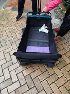 这车挺重的,挺好,就是感觉价钱有点贵,轮子挺大,能装东西。能放小孩,质量感觉也行,收起来也方便,收完也不算小巧,主要挺重,后面少了一个杆,容易扎到人