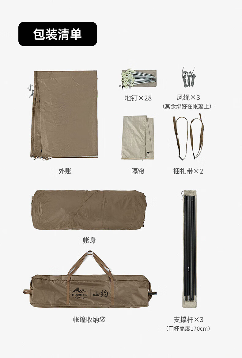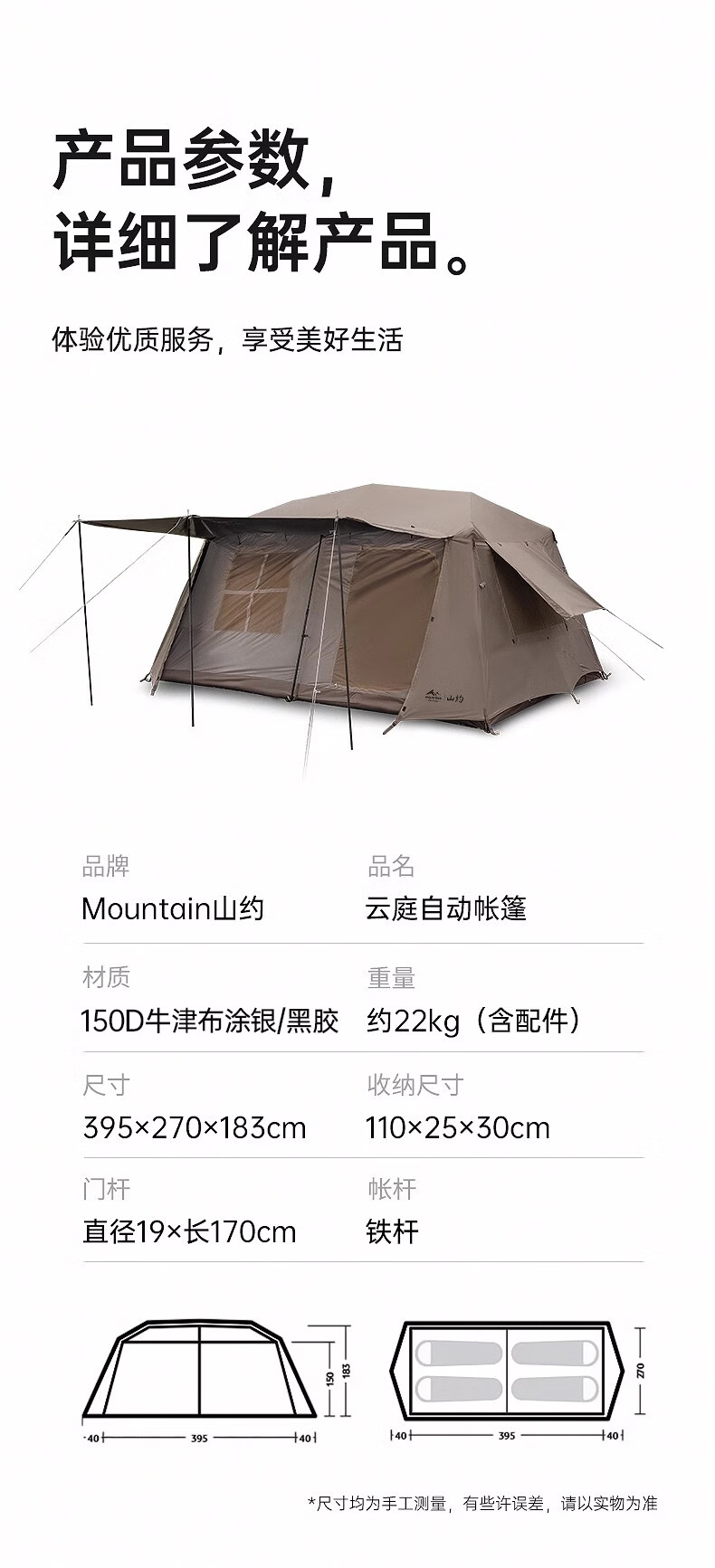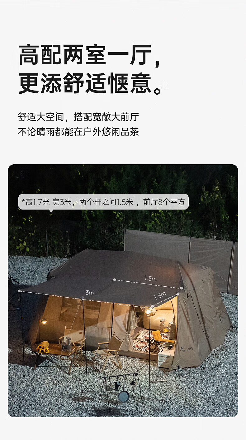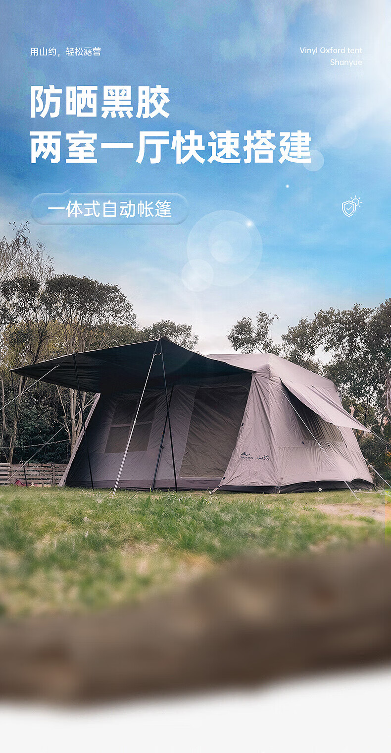 山约山约自动帐篷户外黑胶屋脊云庭13露营装备全套防晒野营过夜防暴雨 云庭6平米 帐篷