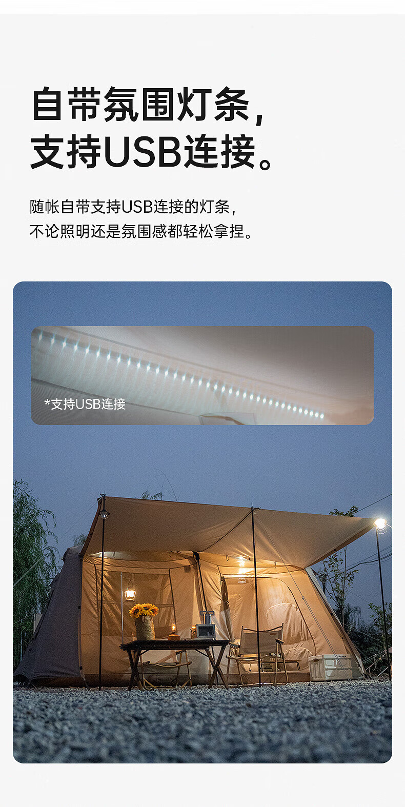 这个帐篷真大大超出了预期!第一次搭建不超过十分钟!帐篷自带氛围灯晚上超漂亮。空间也很大,两室一厅孩子玩的更开心。质量杠杠得比以前买的帐篷料子好多了。