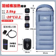超级流浪者电加热睡袋85cm宽秋冬户外露营加厚防寒成人单双人可拼接USB充电 2.5KG【灰兰色】+2W毫安充电宝