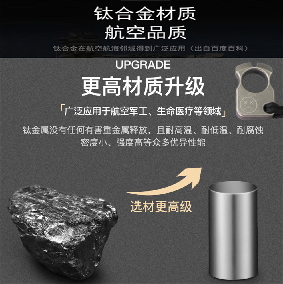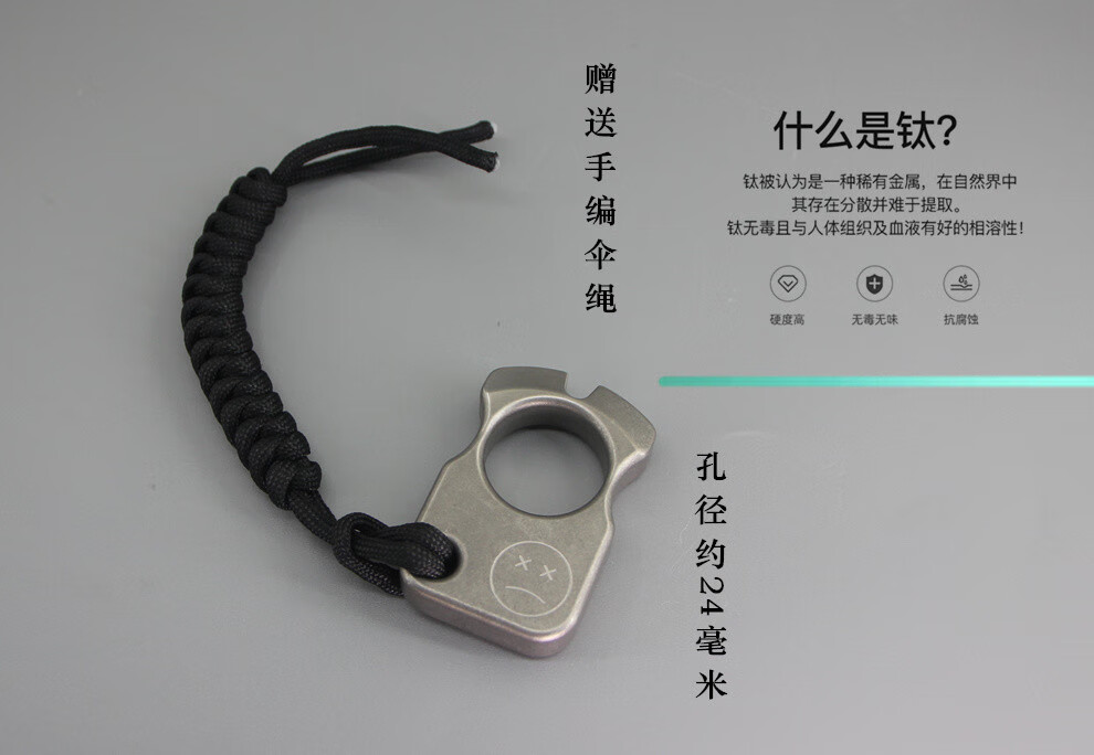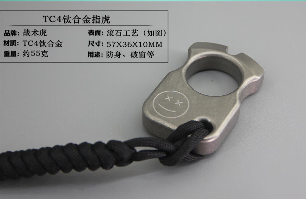 战术虎钛合金指虎CNC加厚设计户外EDC男女防身TC21单孔指戒指钛高端虎指手工匠活伞绳挂坠开瓶器