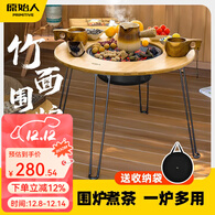 原始人围炉煮茶家用室内烧烤炉炭火盆火炉套装碳烧烤架桌冬天取暖 【5斤碳和900ml茶壶】围炉套装