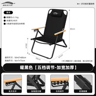 北岳户外折叠椅子便携露营装备可折叠克米特椅躺椅钓鱼沙滩椅野餐桌椅 曜黑色【五档调节-加宽加厚】