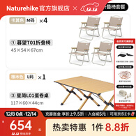 Naturehike挪客暮望折叠椅户外露营椅子野营休闲椅野餐导演钓鱼椅沙滩靠背椅 卡其色4人桌椅套餐(大号桌)