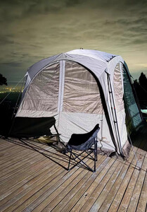 速开很方便,完美解决一个人搭帐篷的困扰问题。网纱板门帘很好用,密封性很好。而且收纳包空间很大,装了两个纱网门帘可以一起收纳进包里,方便下次使用。