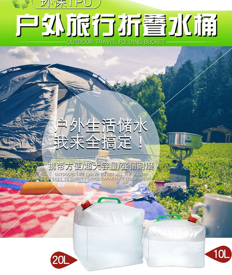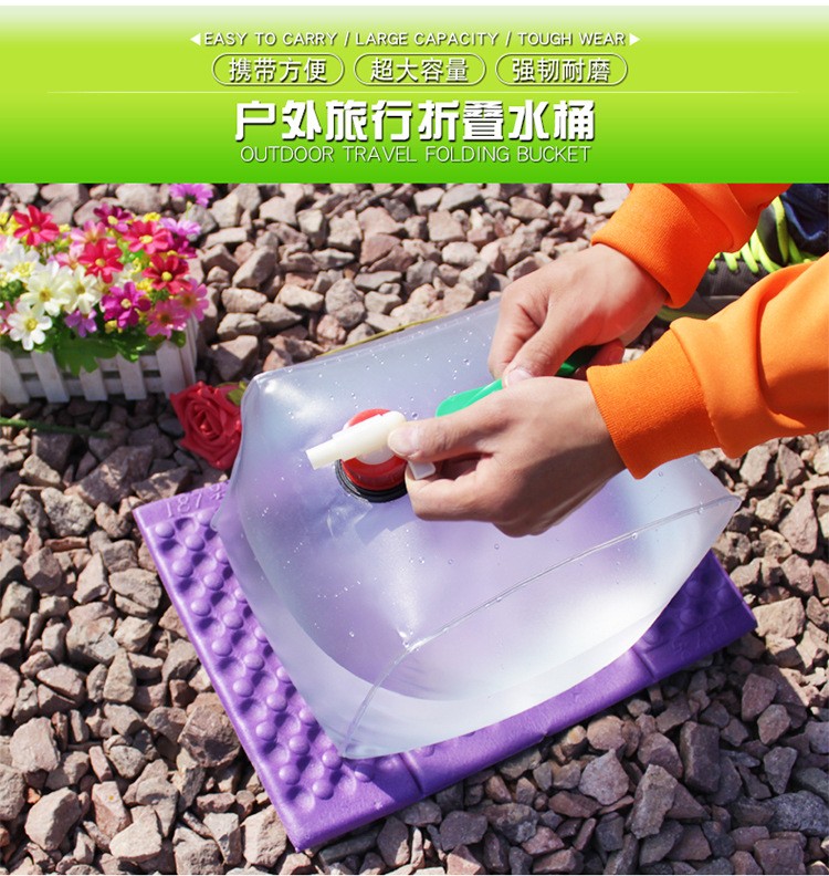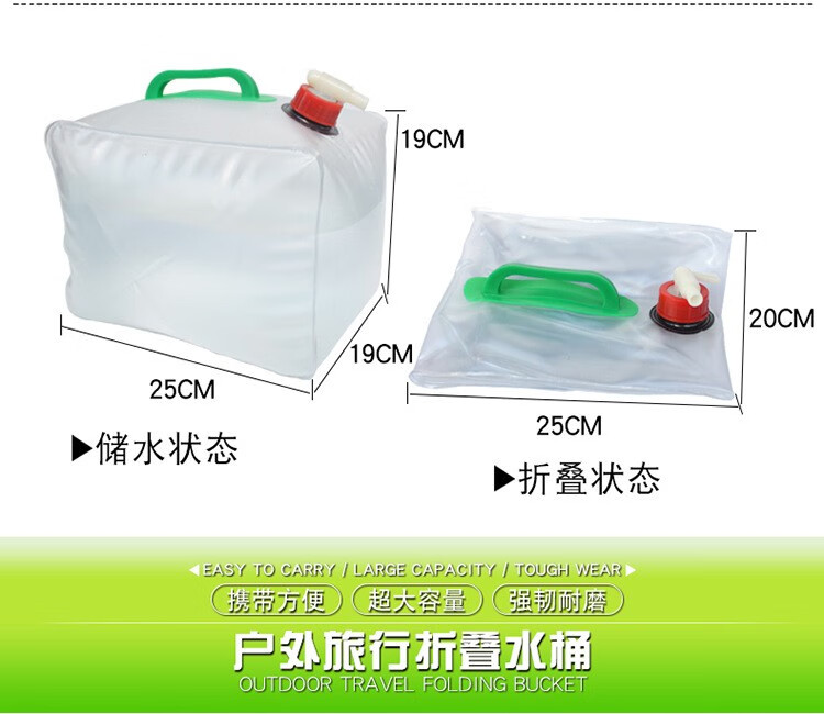 安索户外可折叠水桶带龙头车载大容量水具家用储水箱便携手提水袋 10L方形水桶|含水龙头