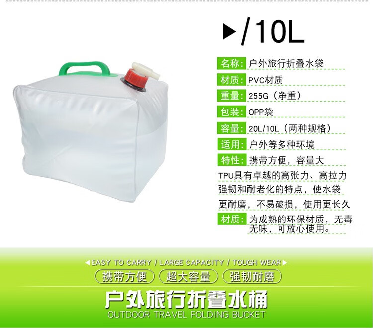 飞跃特户外折叠储水桶加厚便携饮用纯净水桶大容量车载饮水桶水袋露营 10L