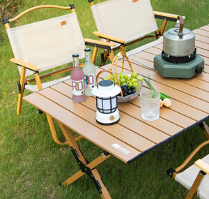 探险者(TAN XIAN ZHE)户外折叠桌椅蛋卷桌克米特椅便携式桌椅套装露营野餐野炊全套装备 【2-4人 经典款】90cm蛋卷桌原木色