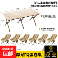 户外折叠椅便携月亮椅办公室午休椅家用阳台调节躺椅露营椅钓鱼椅 150cm蛋卷桌+三档加厚椅*6