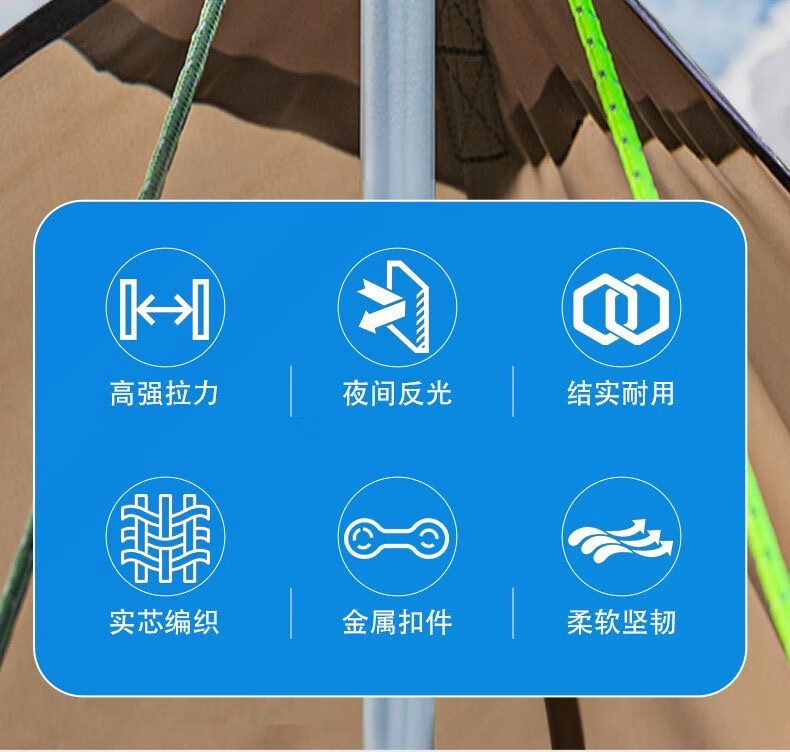 给个赞,这绳子真心结实,户外露营遇到大风也稳得一批。配件做工精细,用着放心。收纳方便不占地,性价比超高。