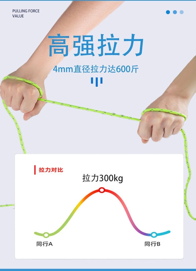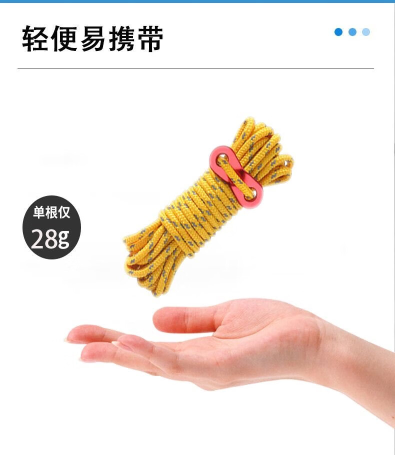 这次买的防风绳真的很实用,露营时帐篷稳多了,再也不用担心大风天气。材质结实,安装也方便,收纳起来不占地方。确实是户外必备的小工具。