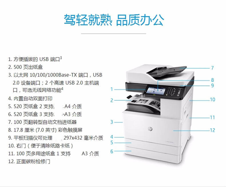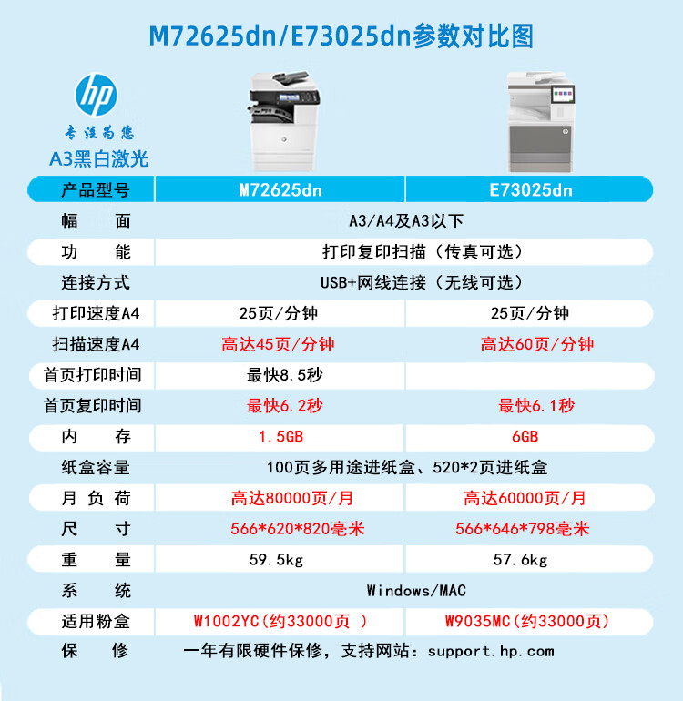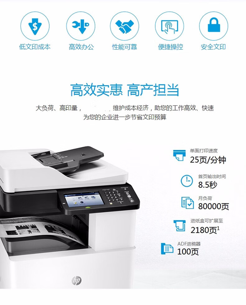 惠普(HP)打印机 惠普M72625dn A3a4黑白激光大型打印机复印扫描一体机 企业商用办公立式打印机 M72625dn(双面+有线网络+惠普无线组件) 官方标配