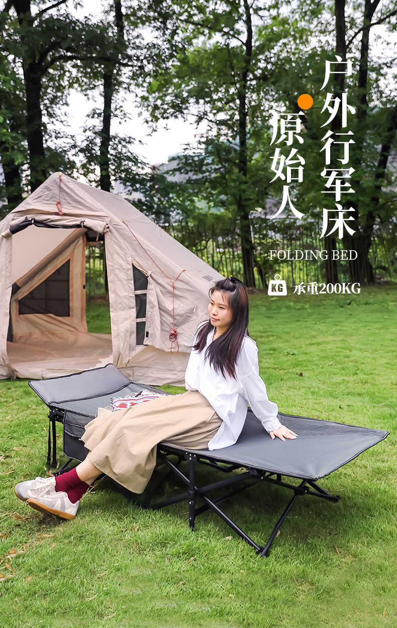 原始人(The Primitive) 户外行军床露营折叠床轻便携式单人野营野外办公室午休医院陪护 灰条纹