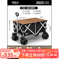 原始人露营推车营地车超大铝合金户外折叠野营野餐桌板遛娃手拉车拖车 220L 曜石黑推车+铝合金木纹桌板