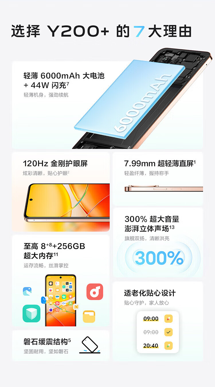 vivo Y200+ 6000mAh大电池 120Hz金刚护眼屏 磐石缓震结构 拍照 5G手机 天空之城 12GB+256GB