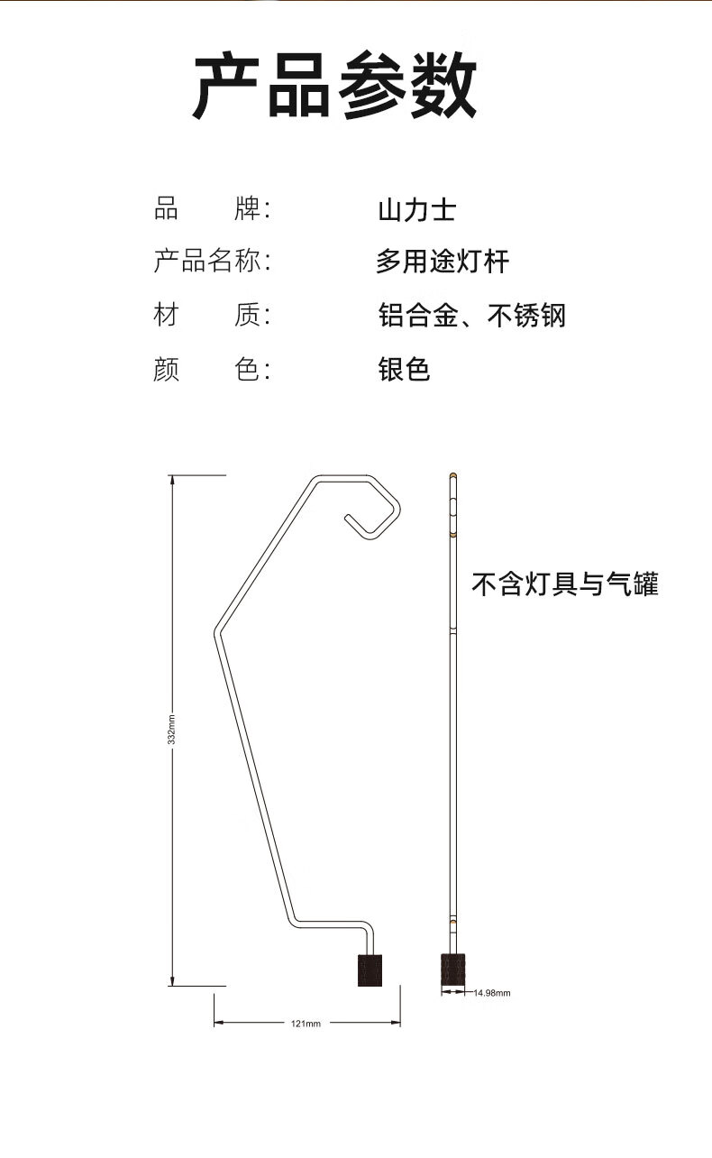山力士灯架挂钩4/1螺纹户外室内多功能灯具物件露营挂钩