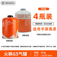 火枫(FIRE-MAPLE)户外扁气罐防爆丁烷液化气分体式炉头气罐高山高海拔燃气罐便携 火枫G5*4【450g】
