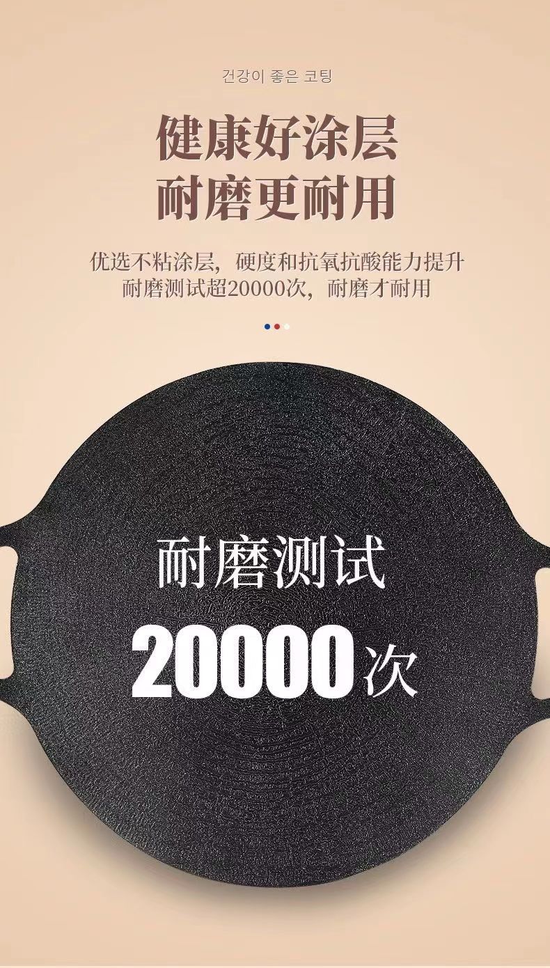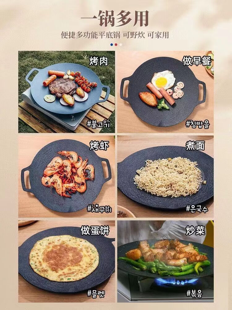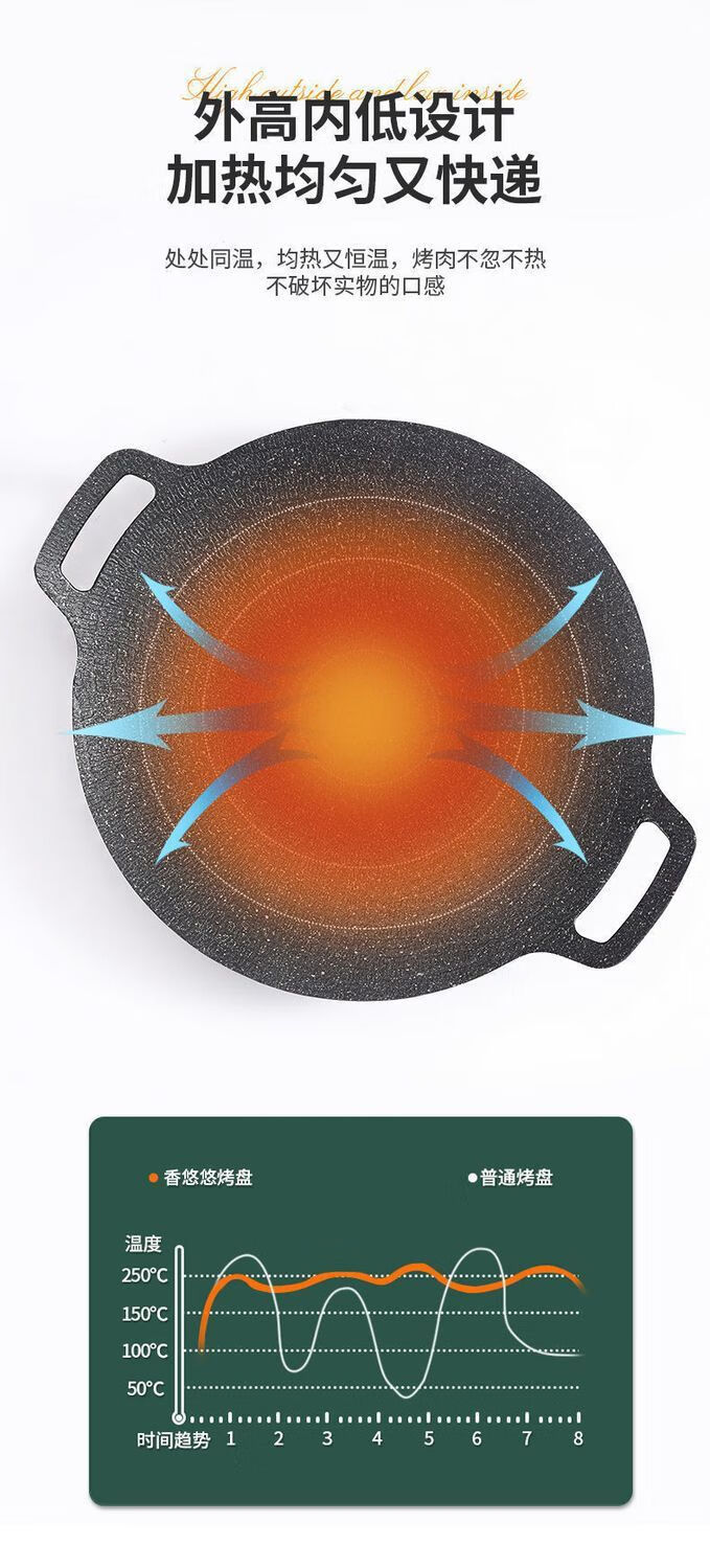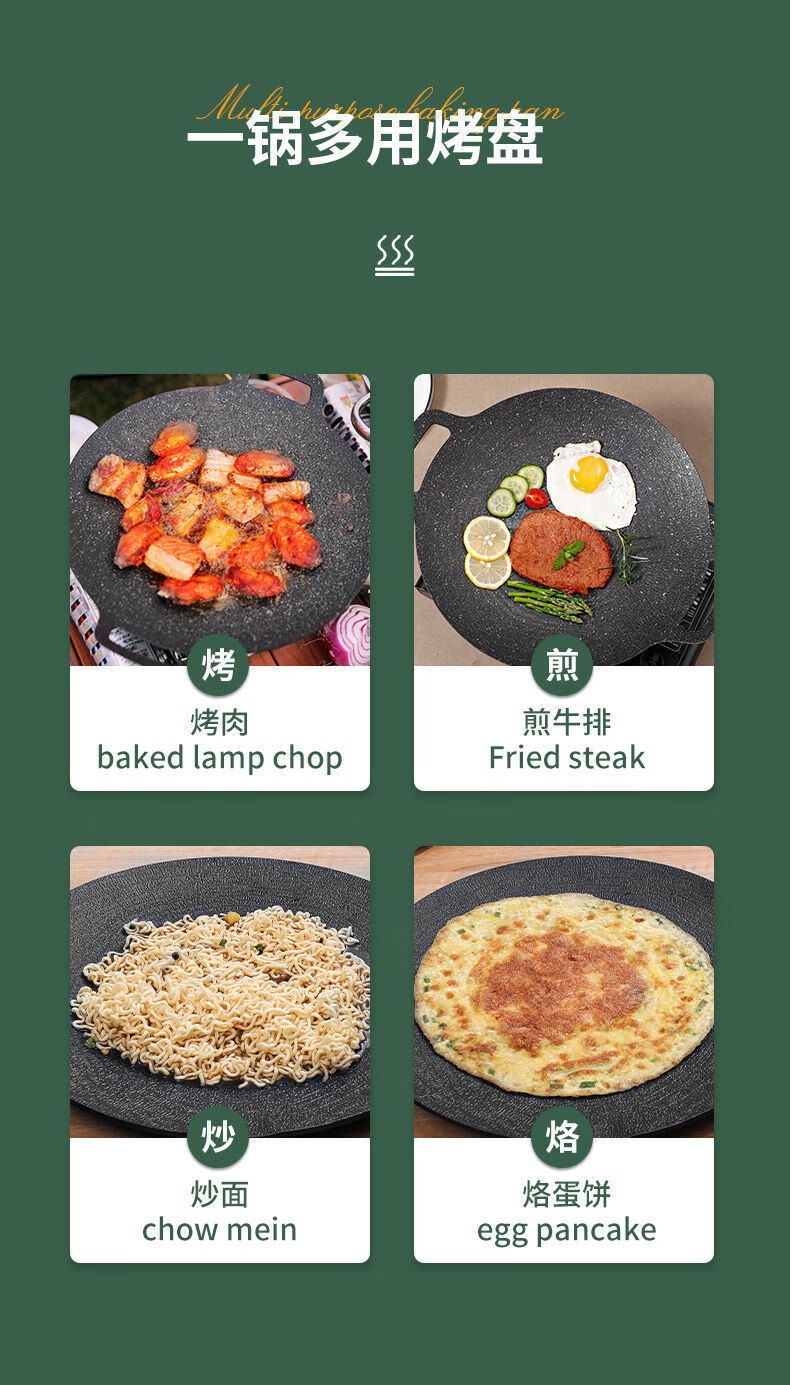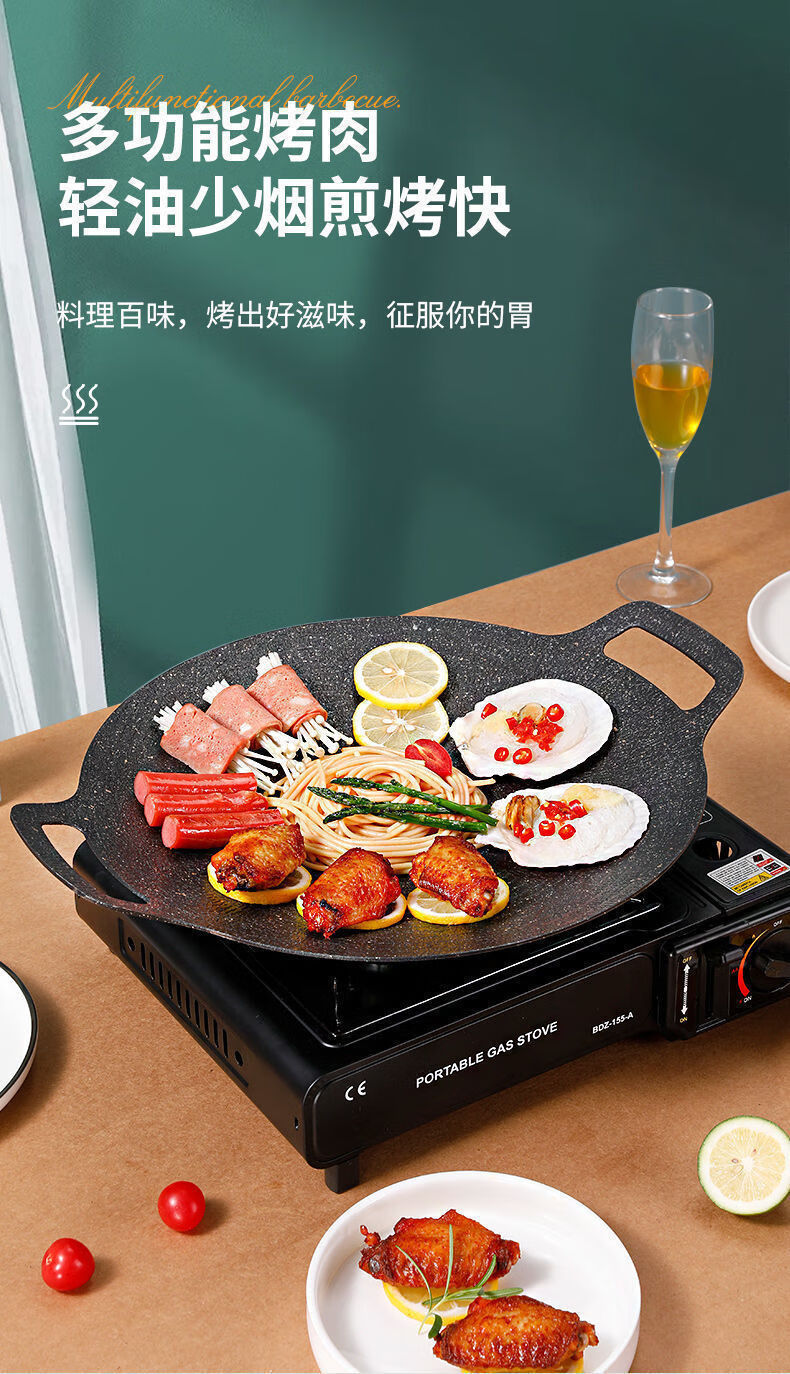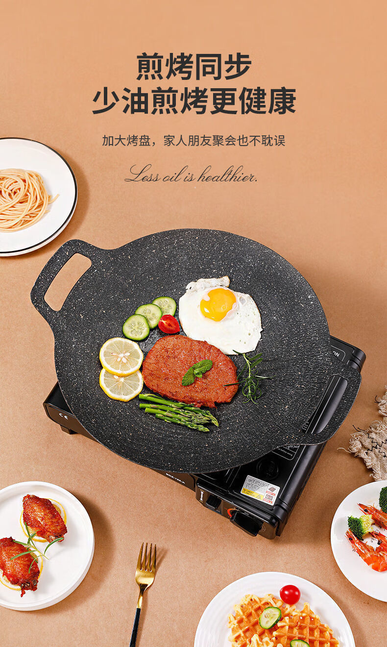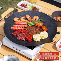 梵靓(FLDJL)圆形麦饭石烤肉盘户外露营便携烧烤盘韩式不粘煎牛排铁盘烤肉盘 三件套(加厚款)30CM烤肉