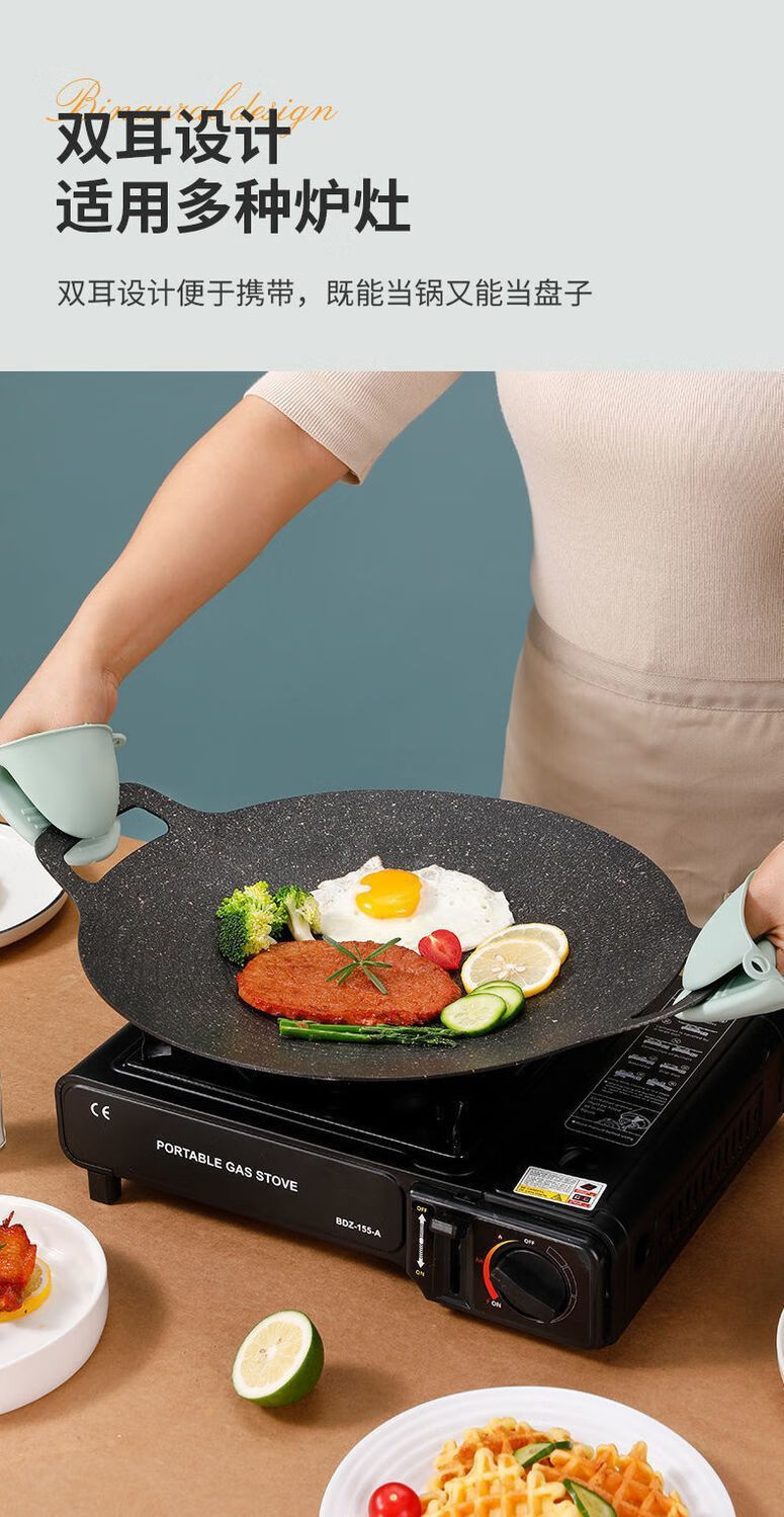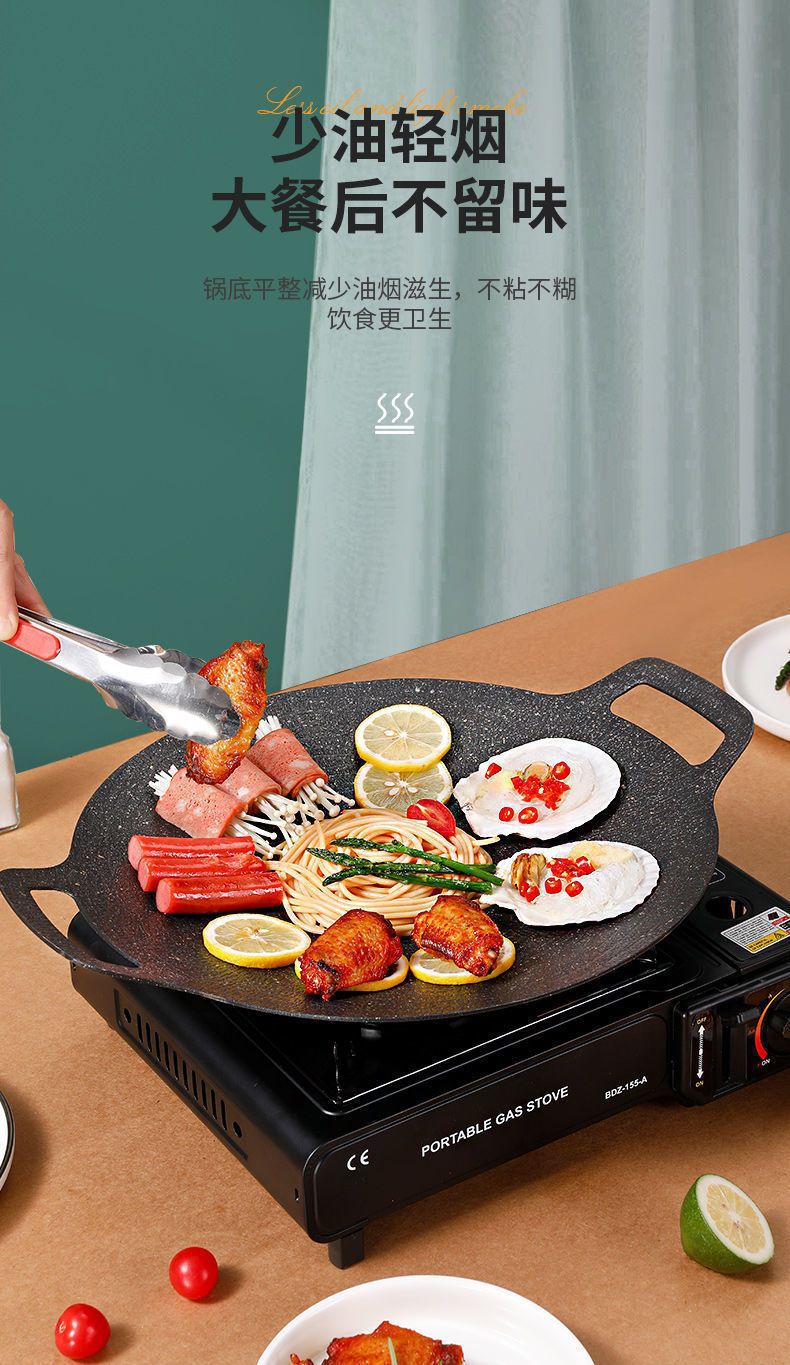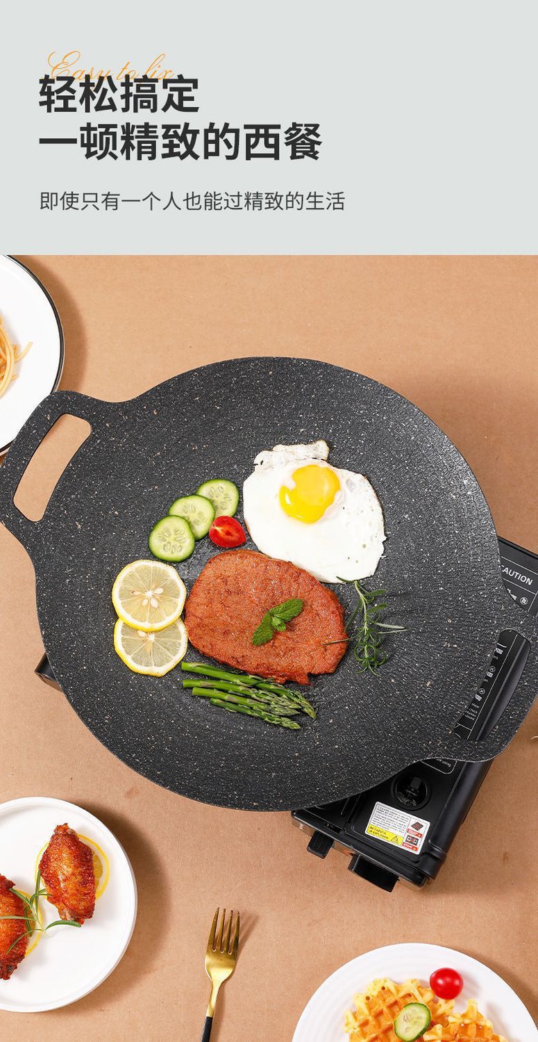 逸兼户外烤盘韩式卡式炉烤盘铁板烧家用烤肉盘麦饭石烧烤锅电磁炉可用 烤盘30cm带四件套