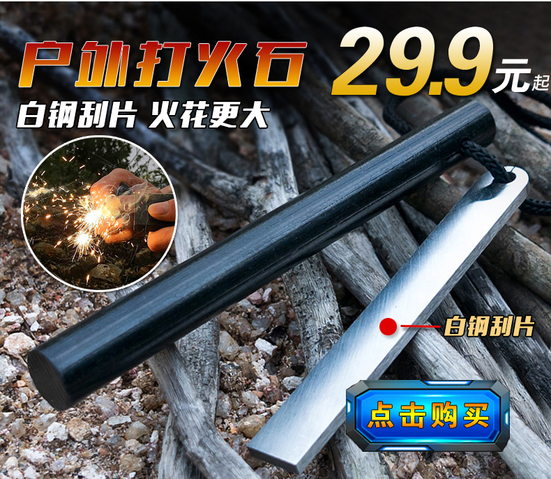 智宙打石露营打棒镁棒多功能野外生存取器块求生引火