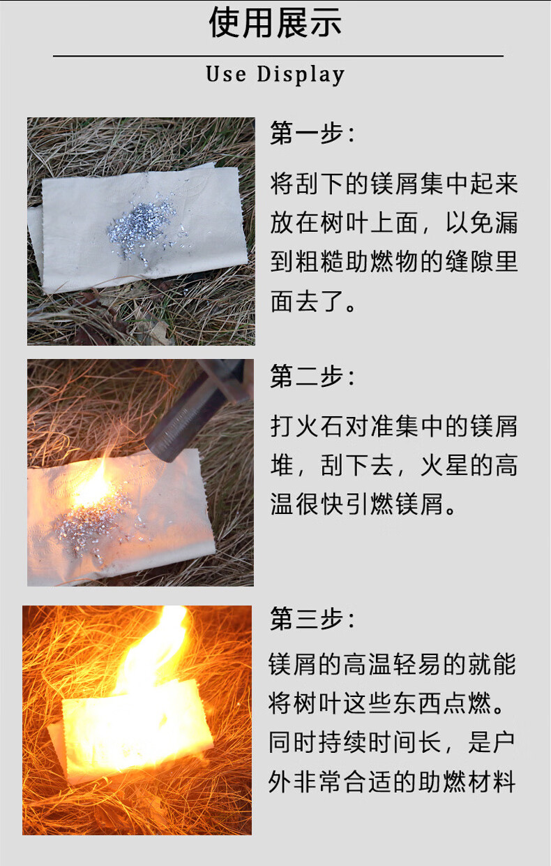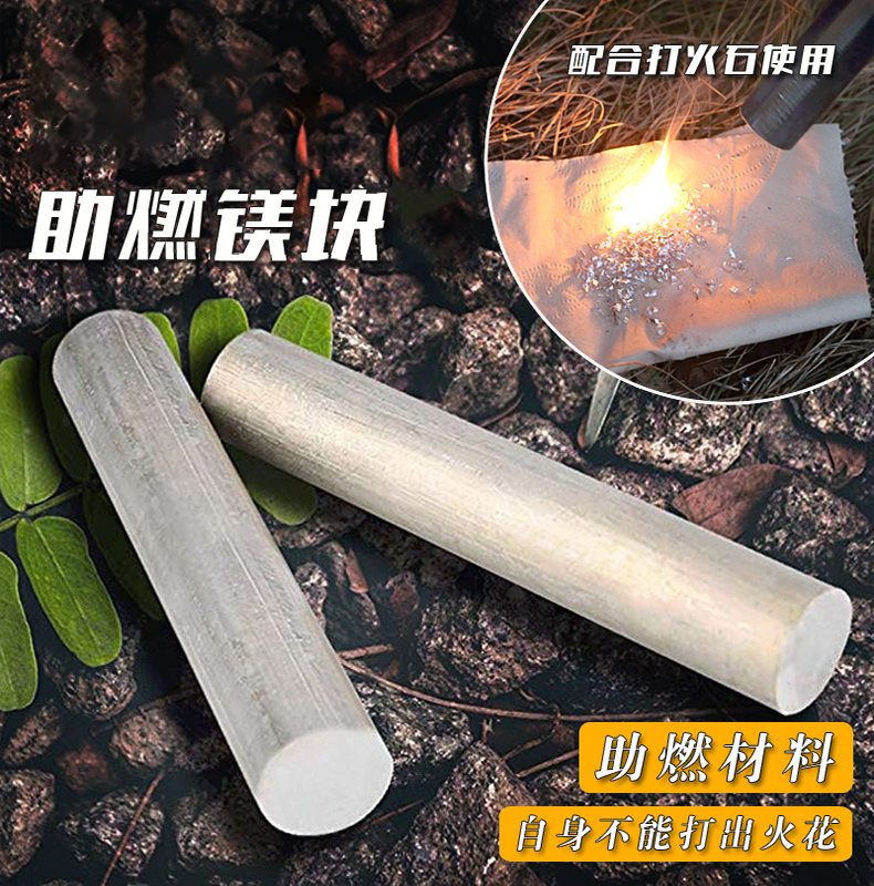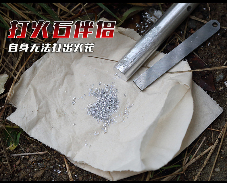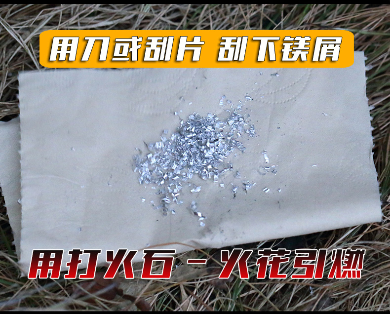 当野外没有干燥的树叶,还是需要镁条助燃。留存备用。镁条比镁块方便刮取。