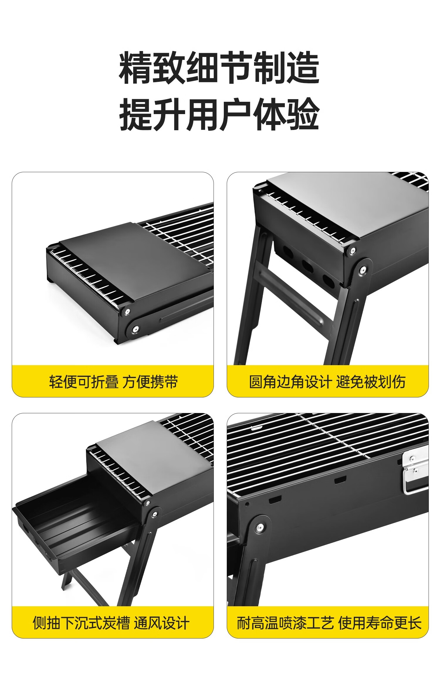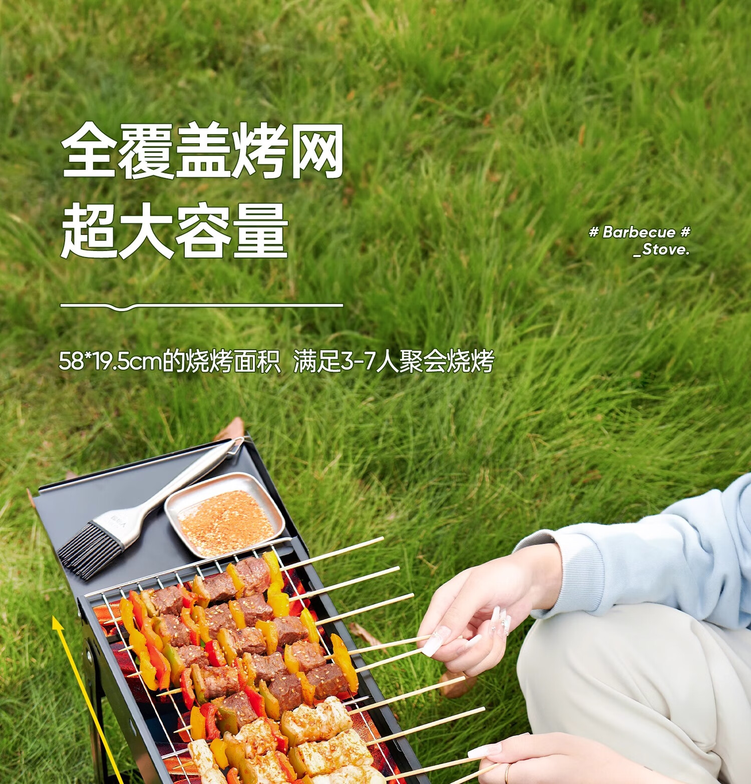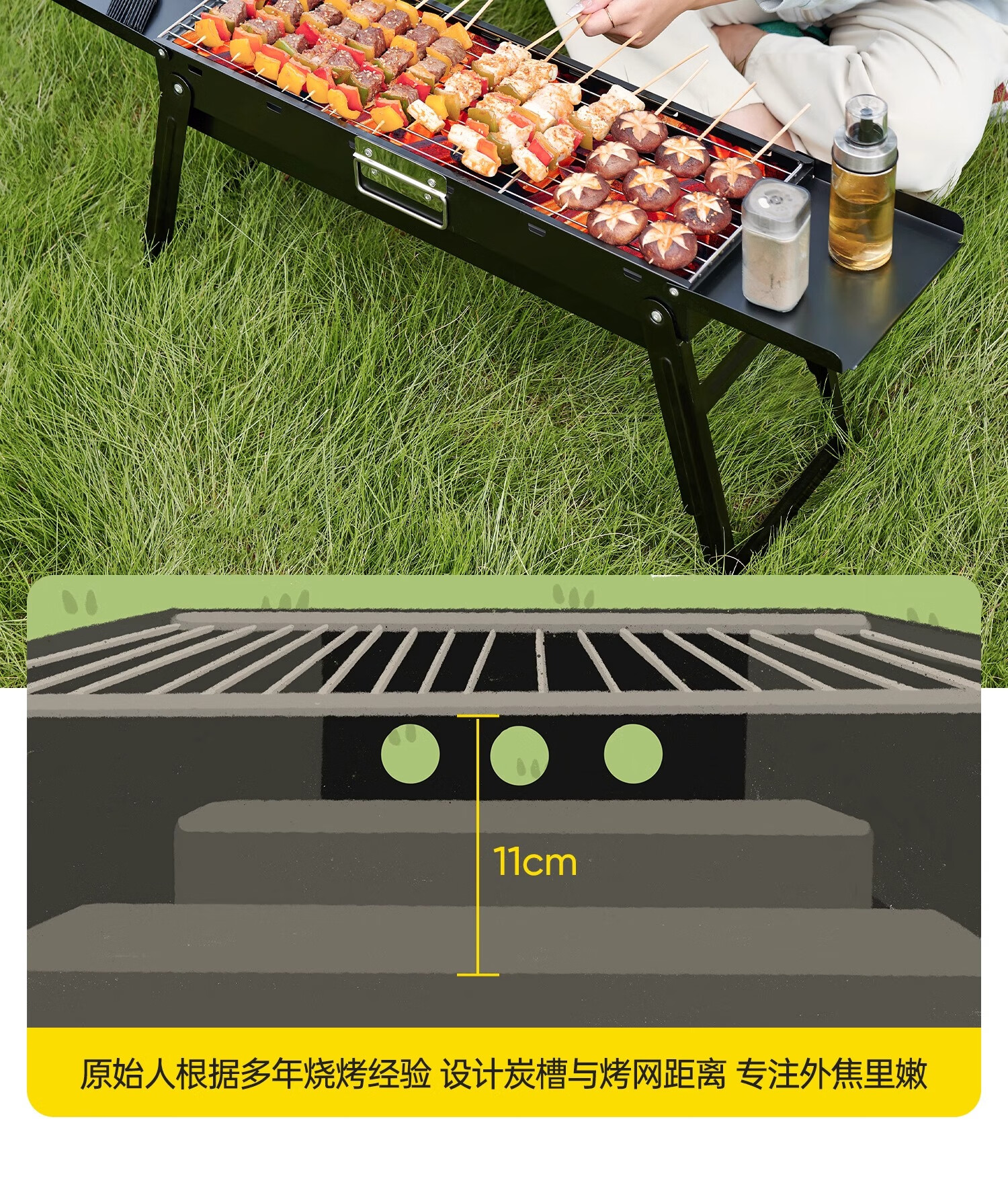 原始人烧烤炉家用烤肉架露营户外小型烤炉不锈钢折叠炉子木炭架子 304烤网·双翼烤炉+10件套+3斤炭
