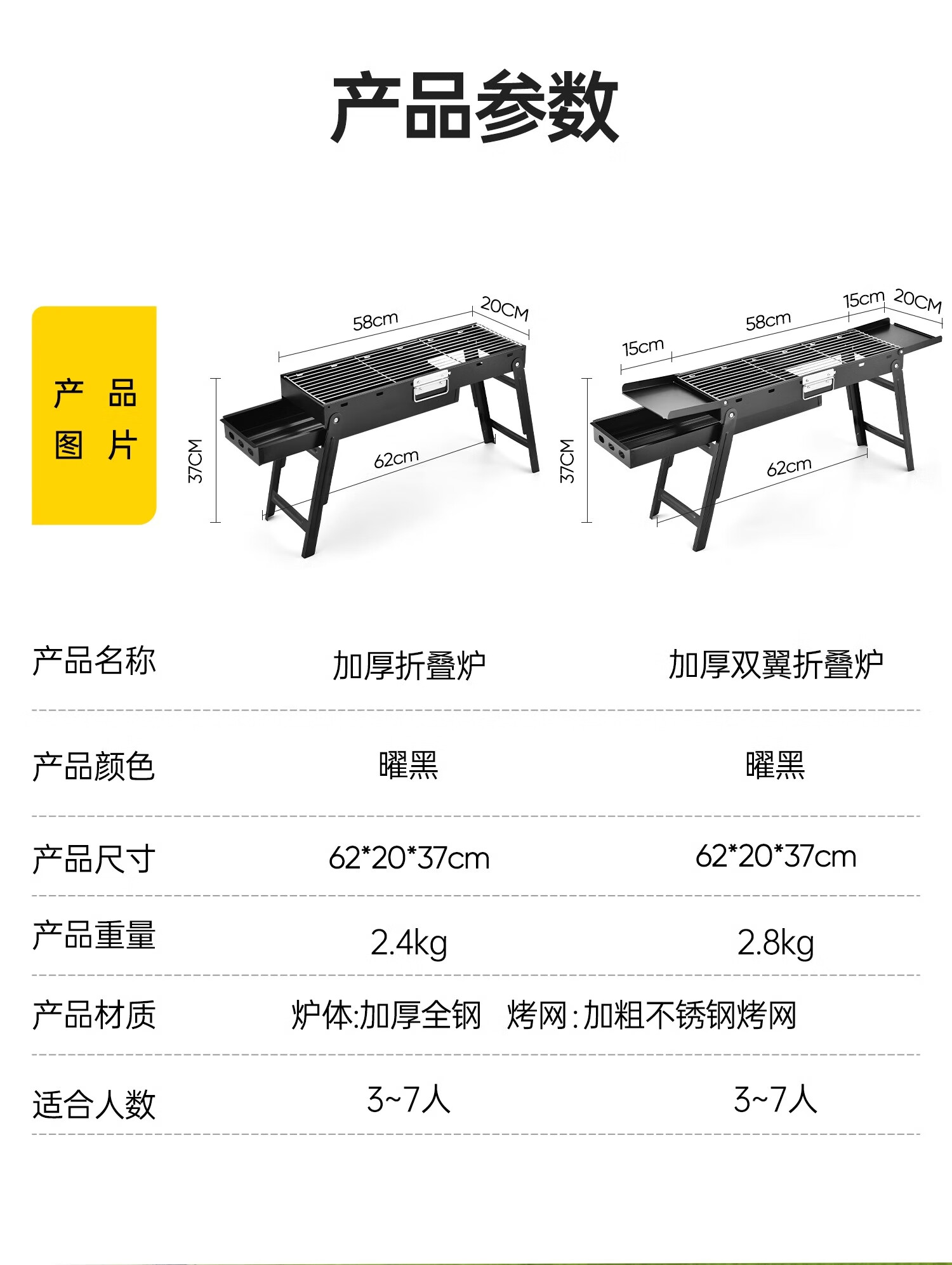 烧烤炉不错,这个牌子专门做户外的,质量很好,大小合适,方便收纳外出携带。