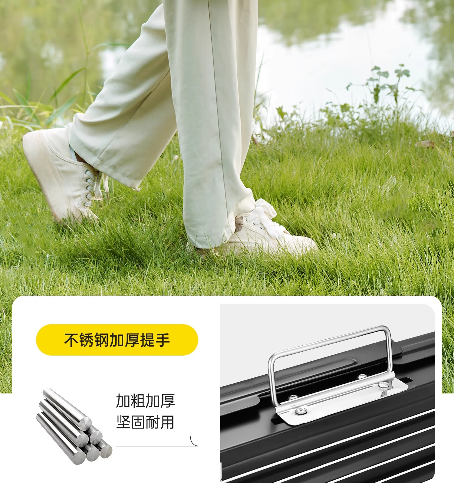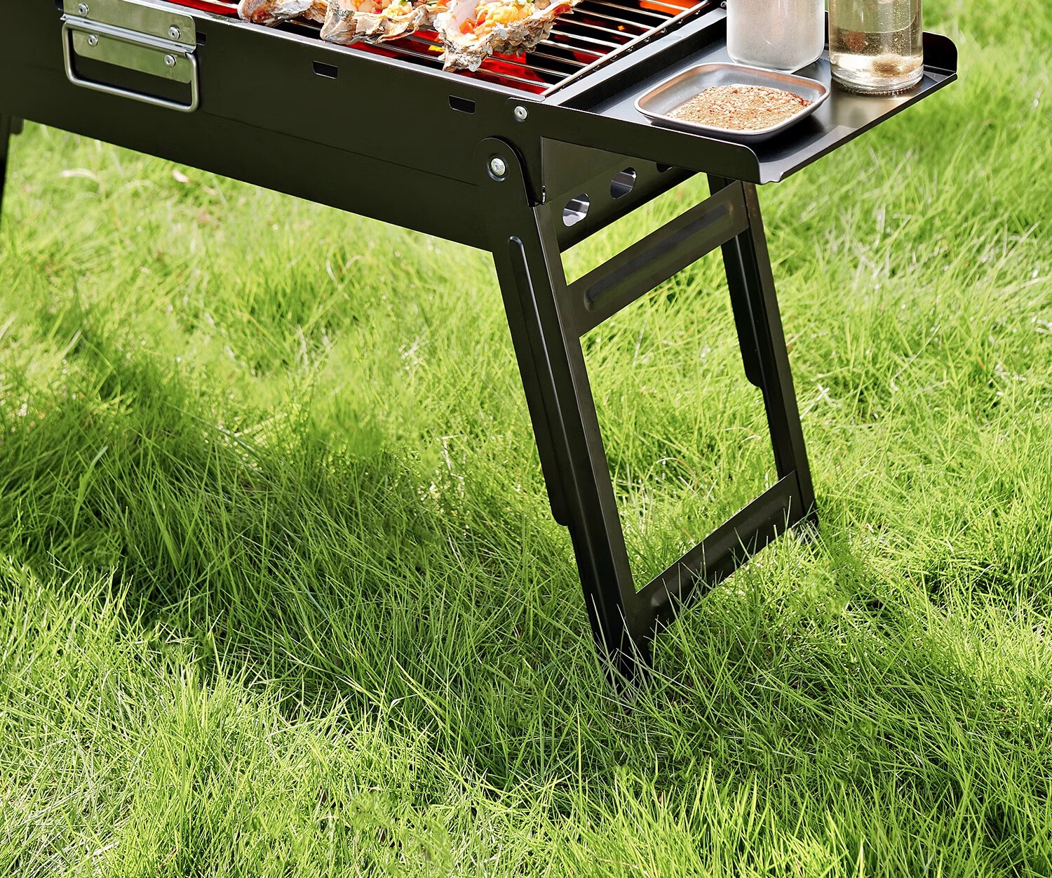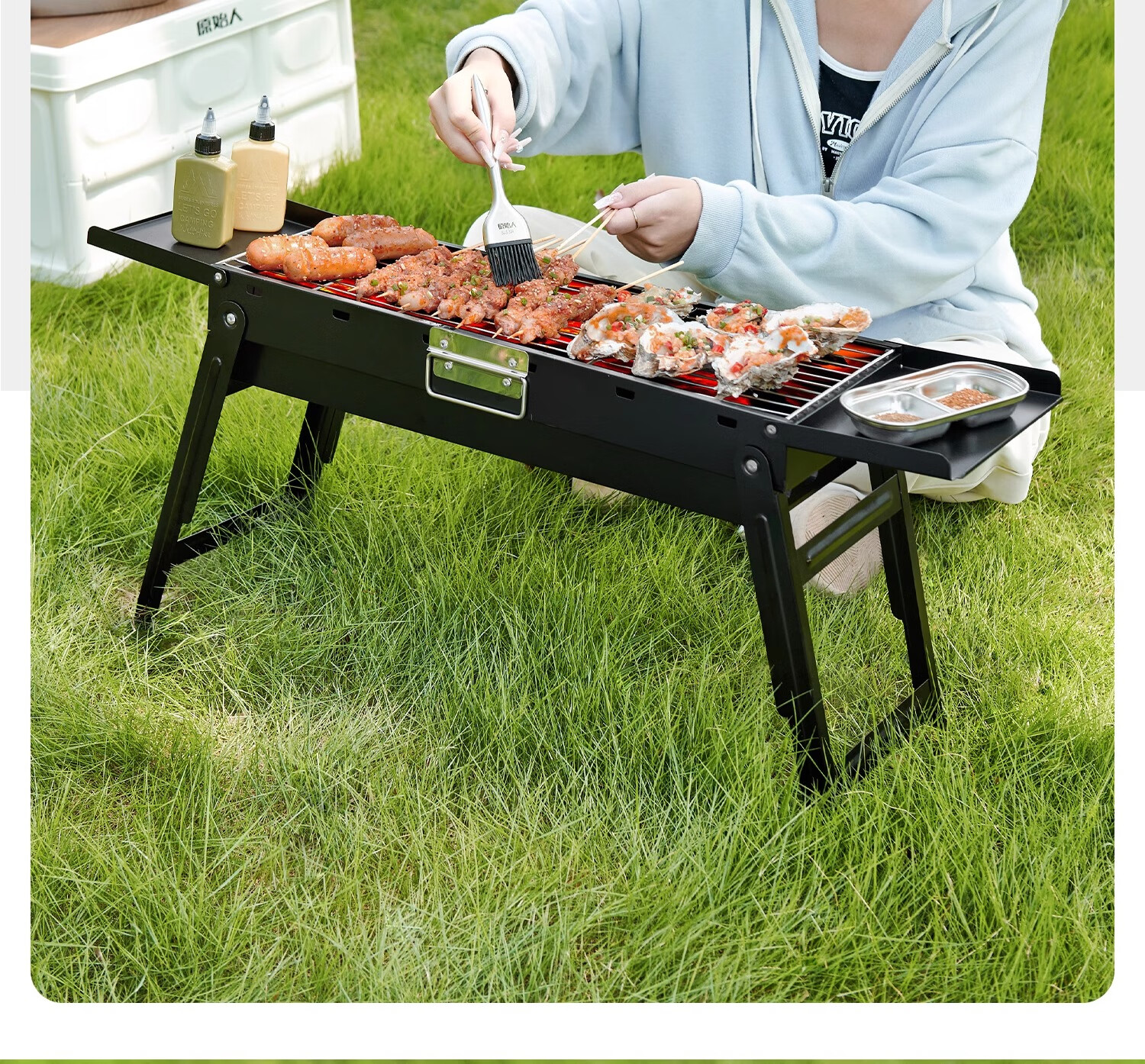 想着假期带孩子们出去烧烤,选了好几家,最后确定了这款,收到货!拆开看了一下,烧烤架质量还不错,看着很结实。很符合预期的要求,另外配套的东西看了一下,也还可以!