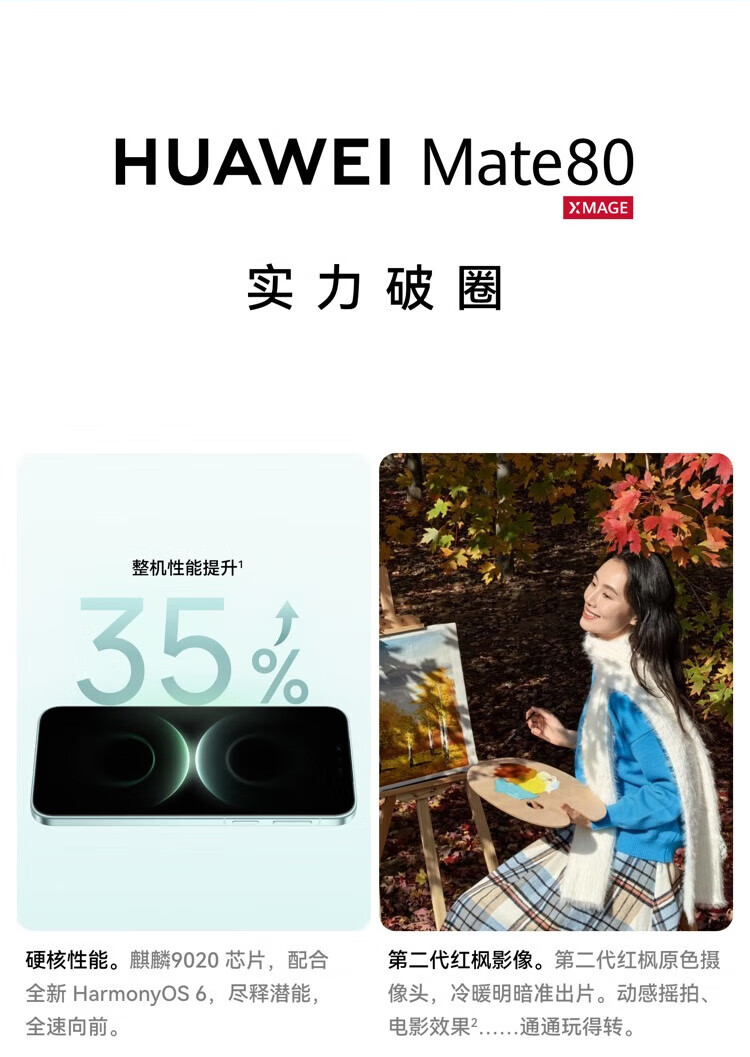华为(HUAWEI)【分期免息】Mate 80 手机 第二代红枫影像 鸿蒙AI 华为直屏手机 华为 Mate 80 雪域白 16GB+512GB 官方标配+原封未激活+全国联保