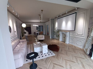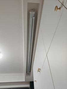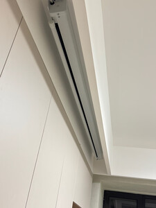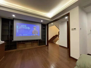 客厅没有装电视,直接装的升降幕布,效果还真挺不错的,幕布升降也很丝滑,声音很小,美观又大方