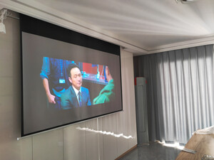 安装上的效果不错,幕布升降声音不大,比白墙效果好多了!!!