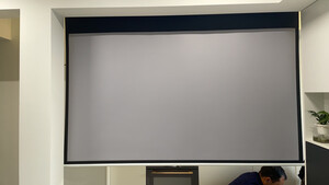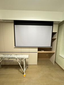 幕布遥控反应灵敏很顺滑,就是刚打开有点味道。最大感受是84寸实际观影比想象中小,显得不够大气。建议大家条件允许就直接买更大尺寸,效果会好很多,师傅建议选嵌入的会更美观一点。