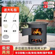 柏潮加厚柴火木炭火炉围炉煮茶取暖烧烤户外煮饭多功能家用野炊烧柴 A满焊工艺【35CM+便携拉手+烤网 【烧坏】/新款加厚炉灶