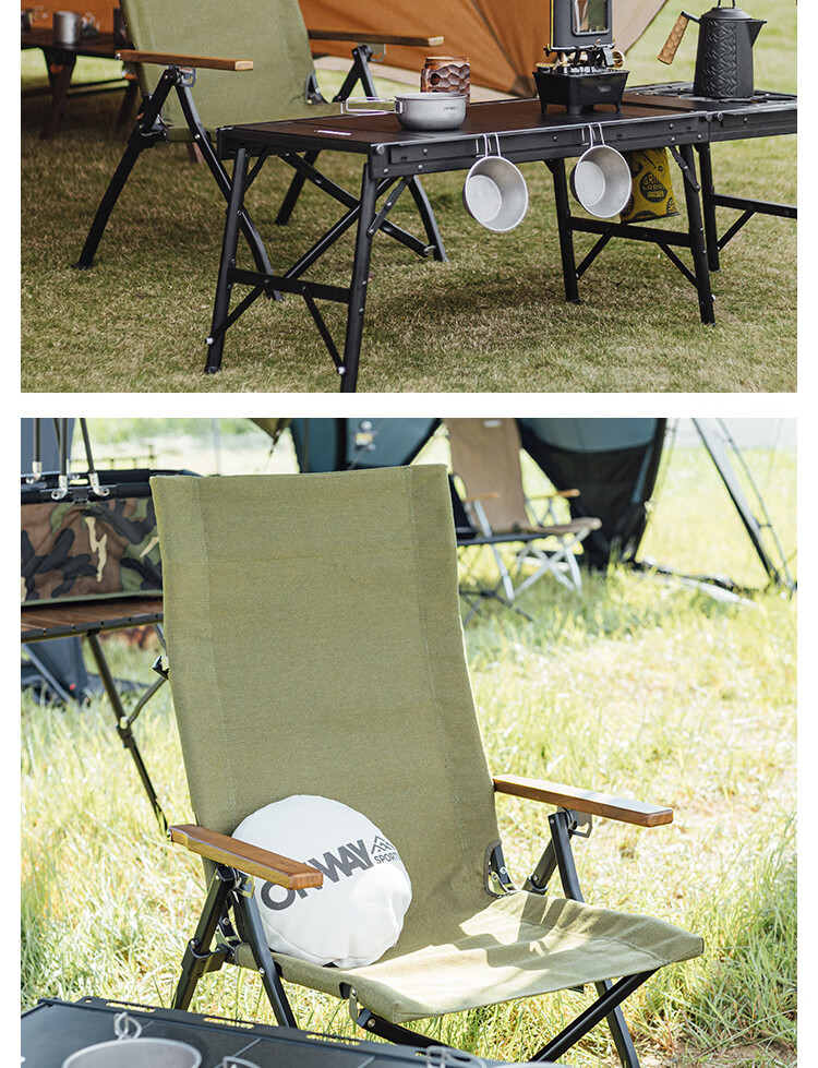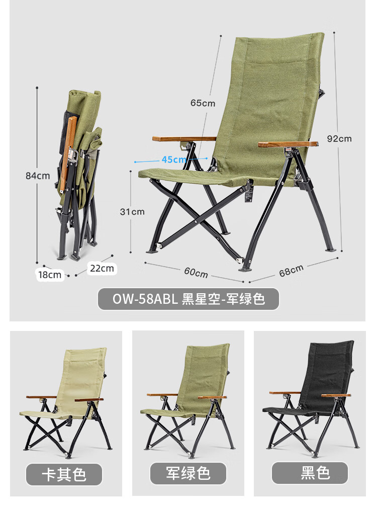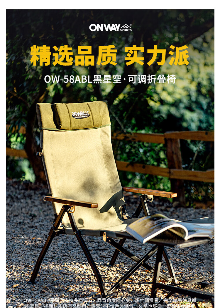 OnwaySports黑星空58ab高背海狗椅户外折叠露营椅子钓鱼午睡陪护阳台午休躺椅 头枕组合-卡其色(黑星空)