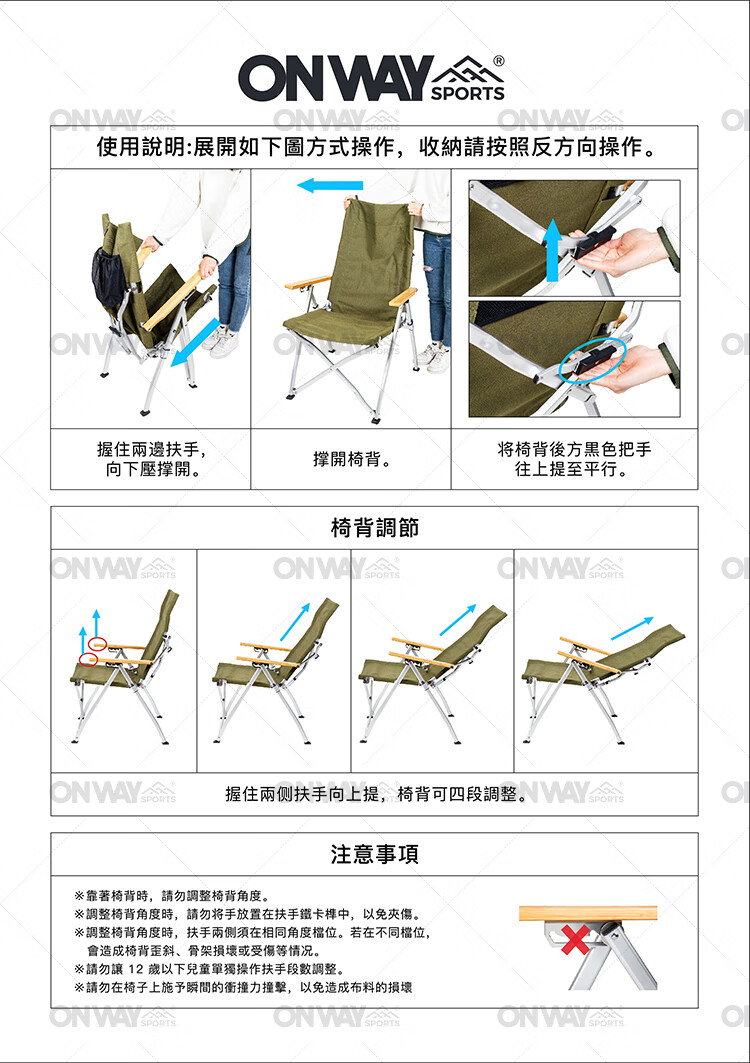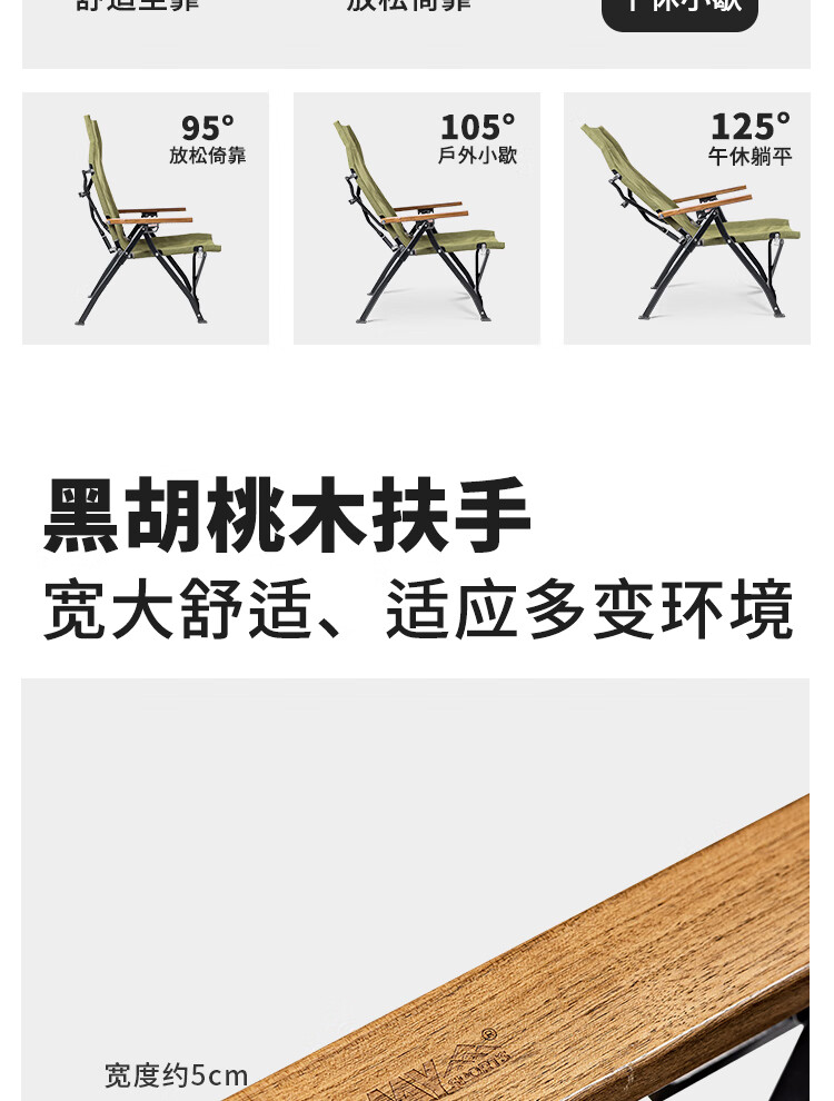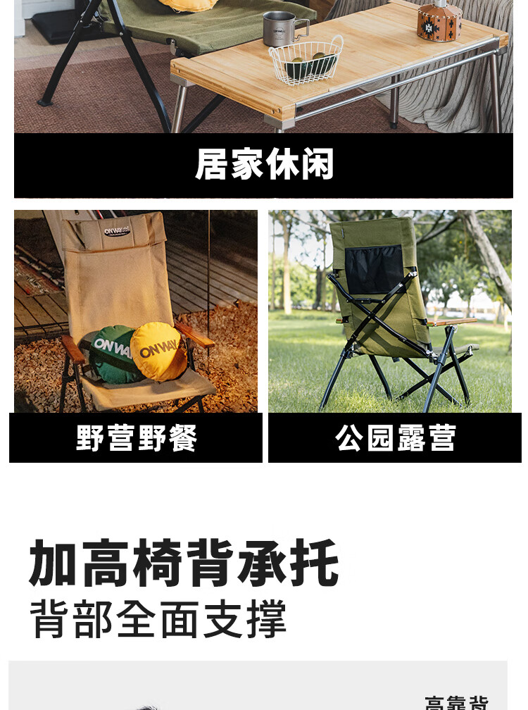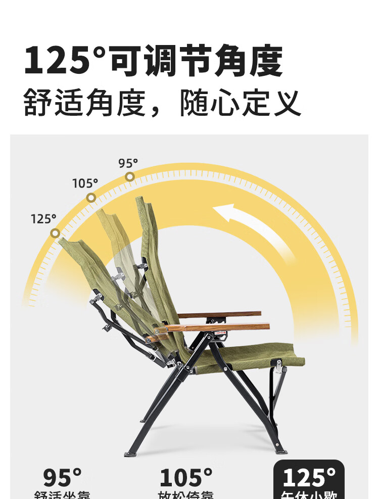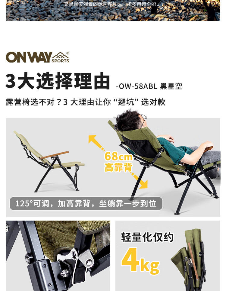 OnwaySports户外折叠椅便携露营可调节躺椅靠背超轻铝合金椅子 新款黑星空 军绿色 三档可调