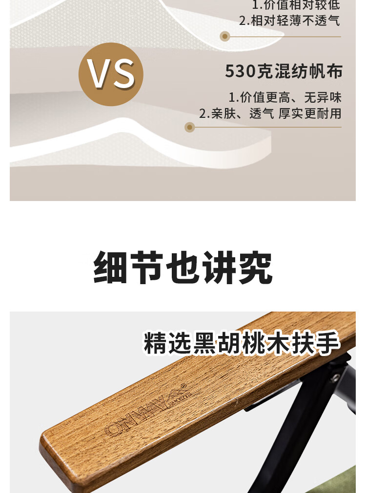 用了一段时间再评价:椅子买了好几把,但这两把椅子做工扎实,帆布透气,是我买的所有椅子里坐感最舒服的!除了小贵没有毛病,值得推荐!