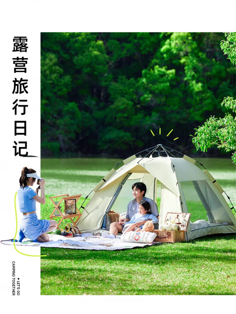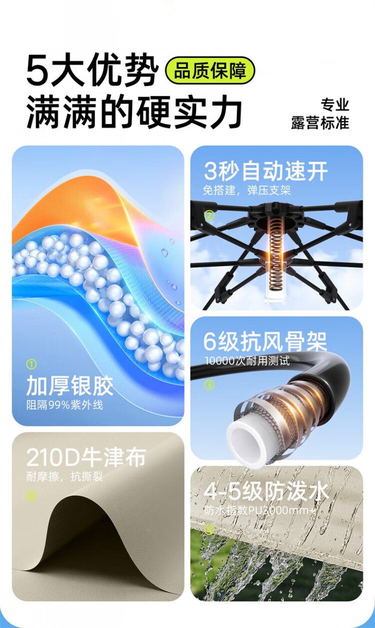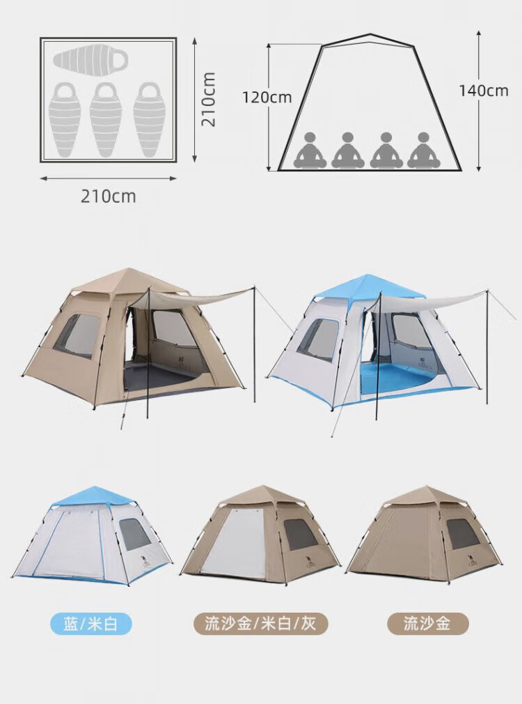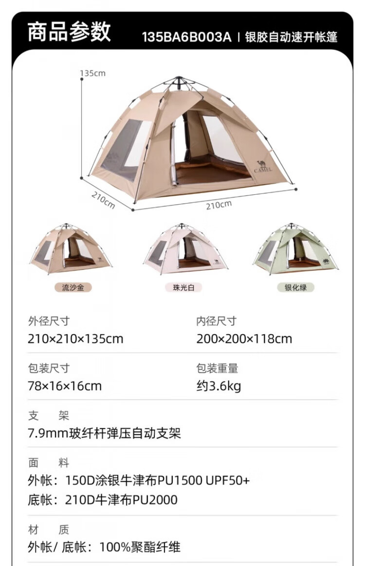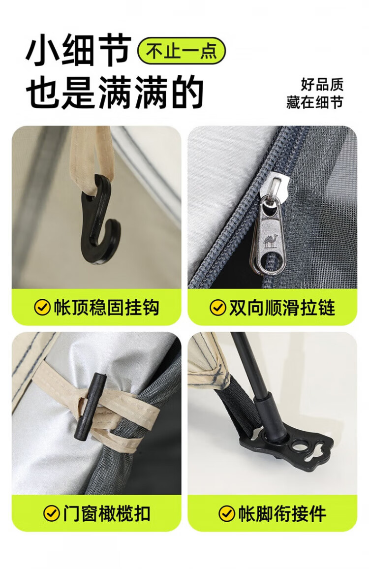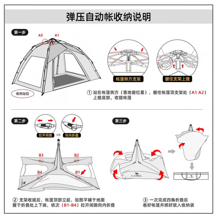 帐篷收纳袋内侧缝有详细的开收帐说明书,如有不明白的可看说明书或联系在线客服为您解答。
