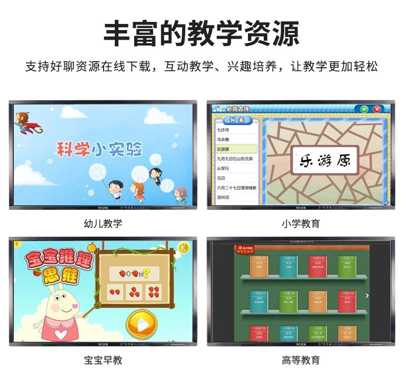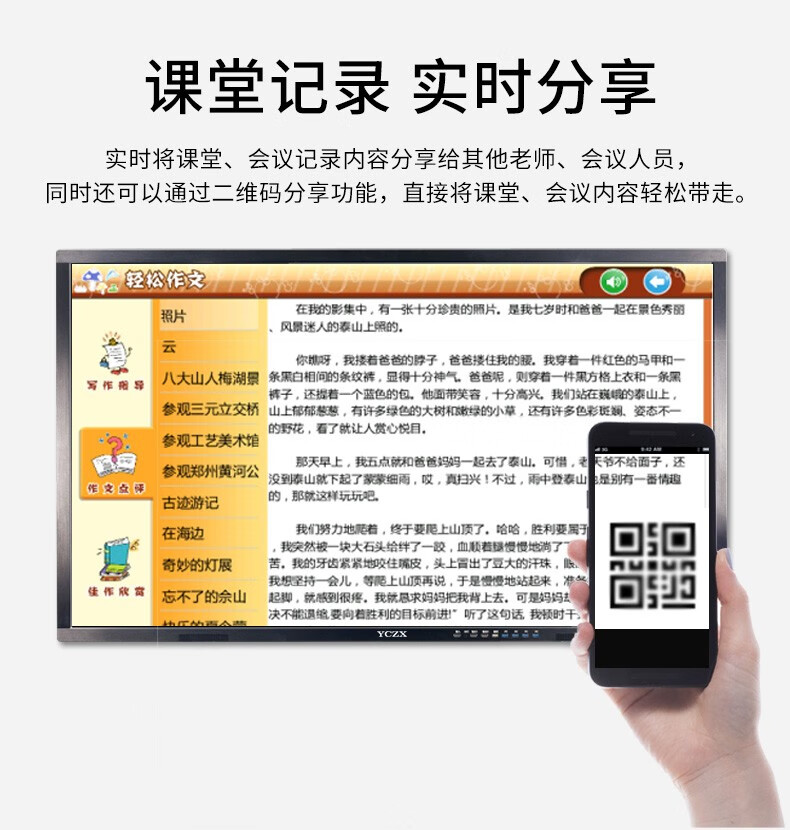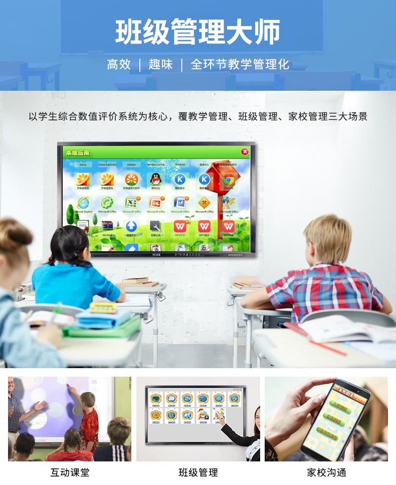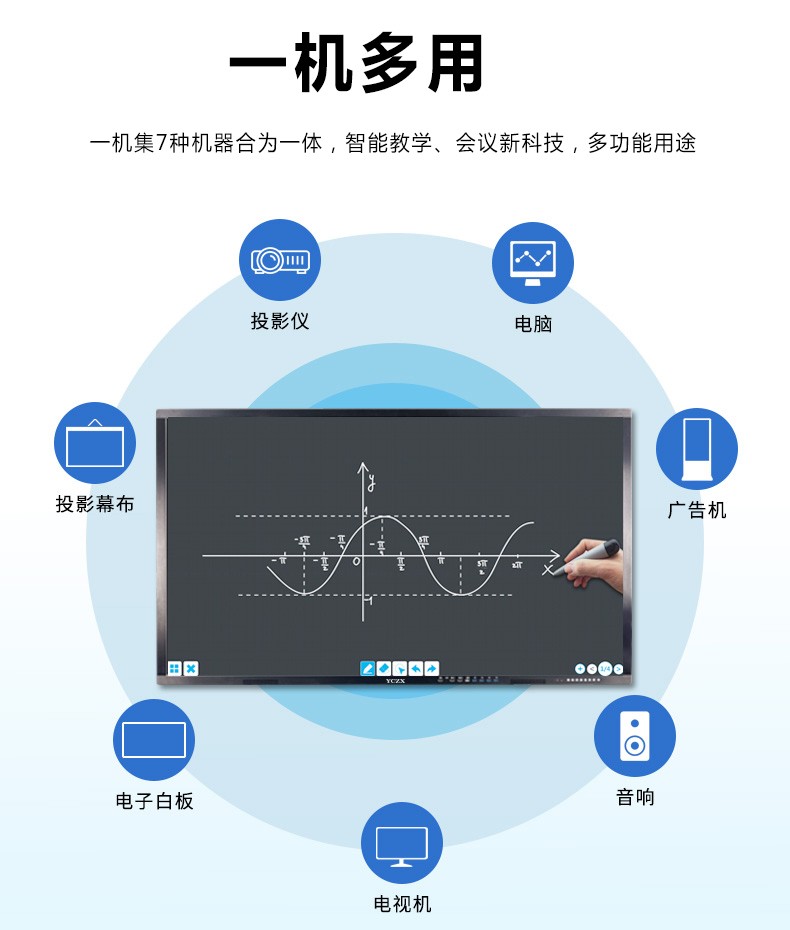非常方便一款教学软件 值得大家购买本人强烈推荐。一体机反应程度也很高 。 尺寸大小:65寸尺寸大小非常合适 外形外观:大气上档次 刷新率:效率真高 显色效果:清晰度高