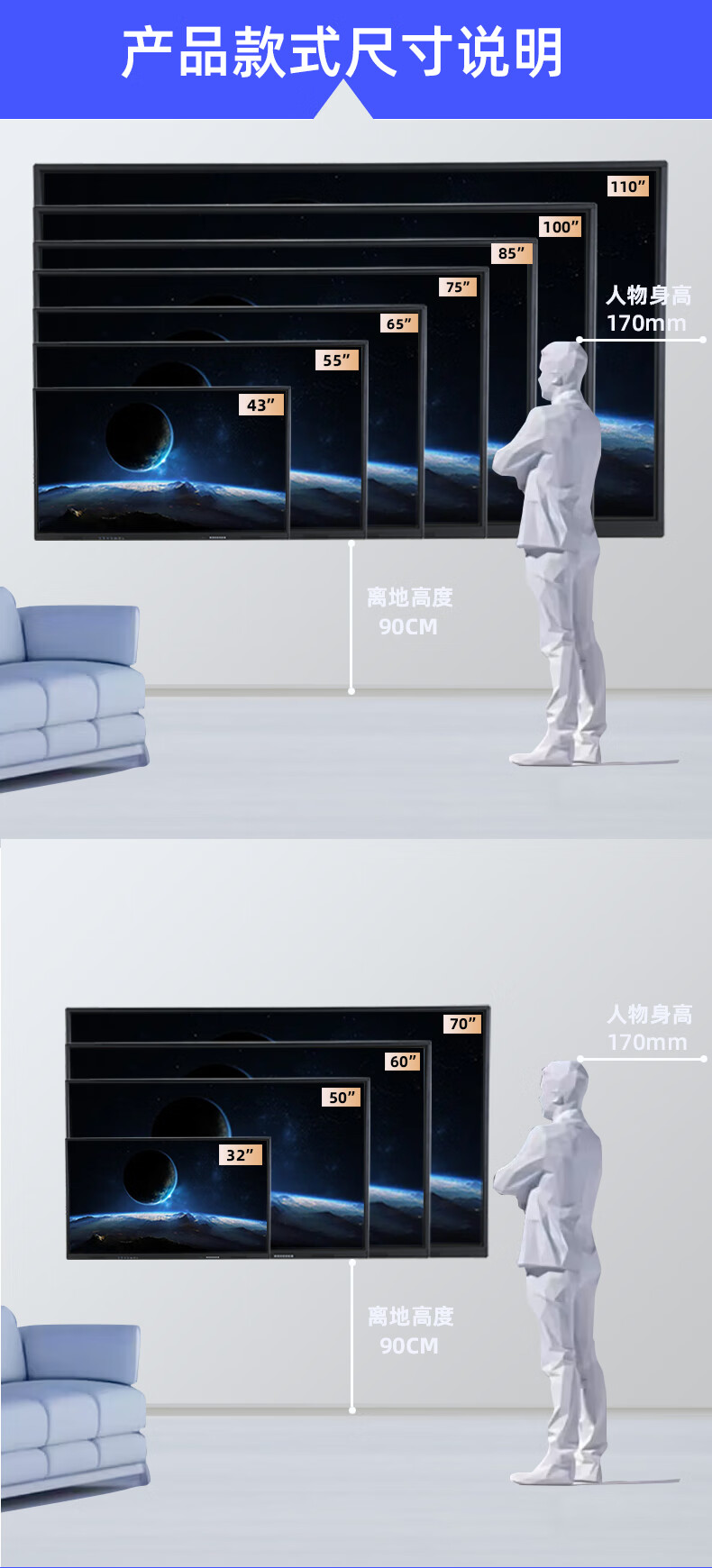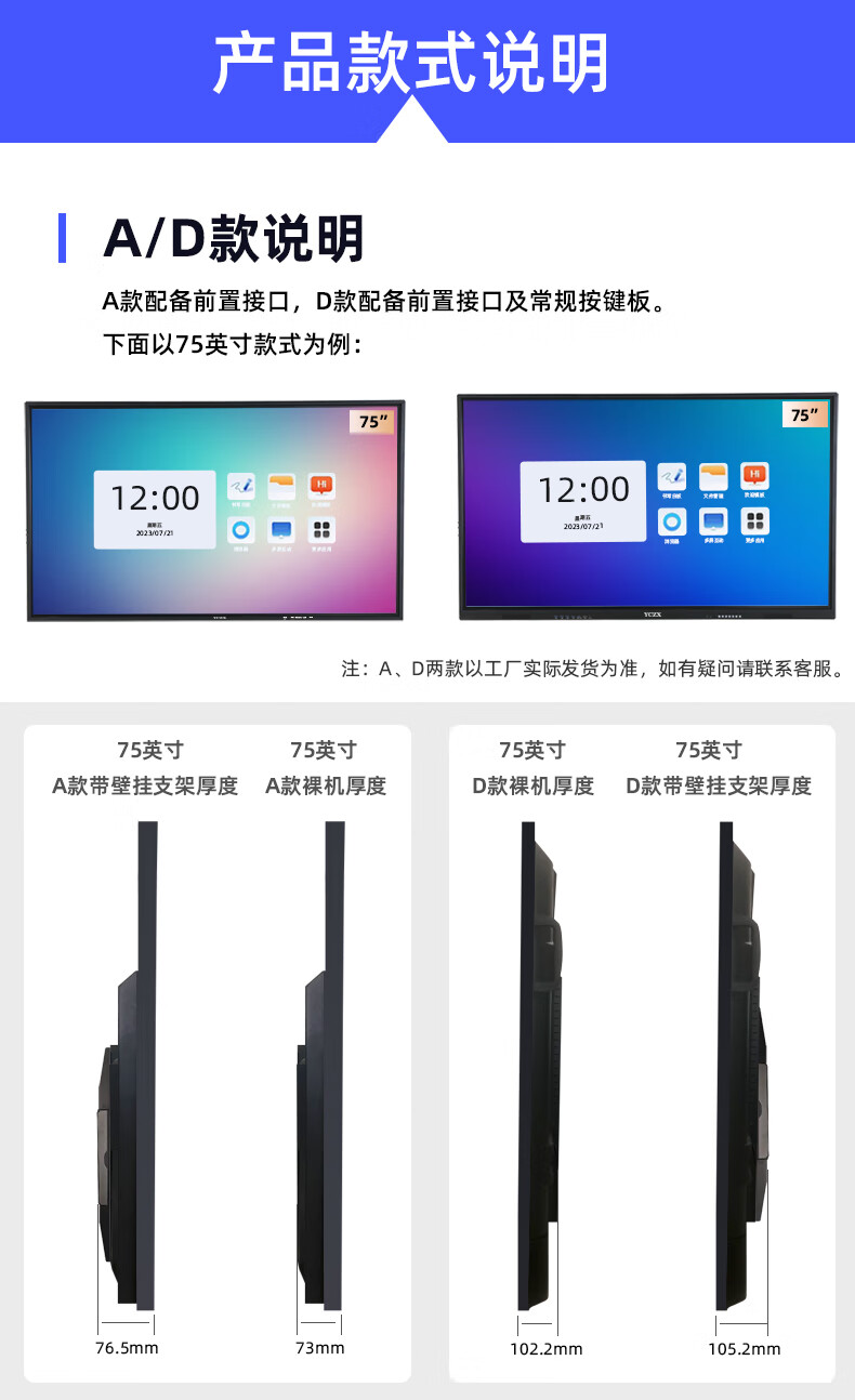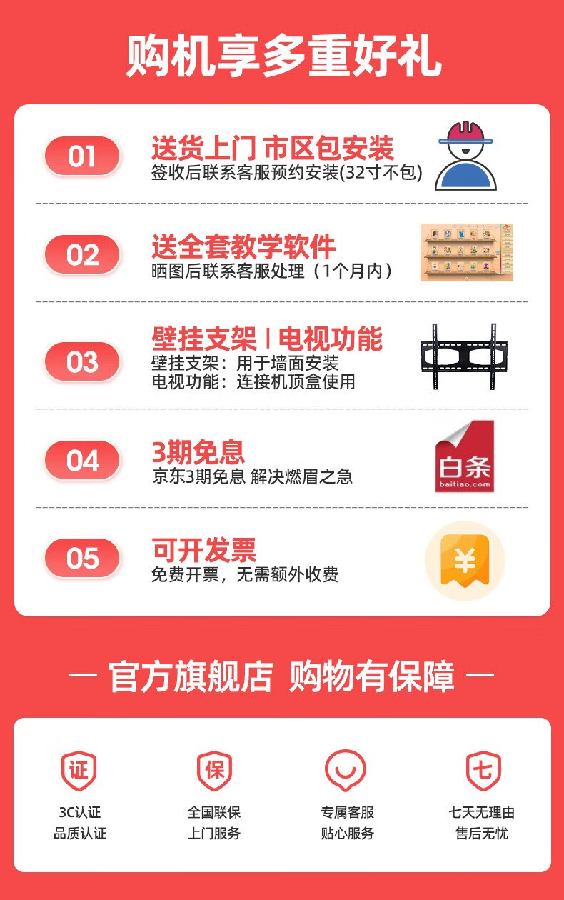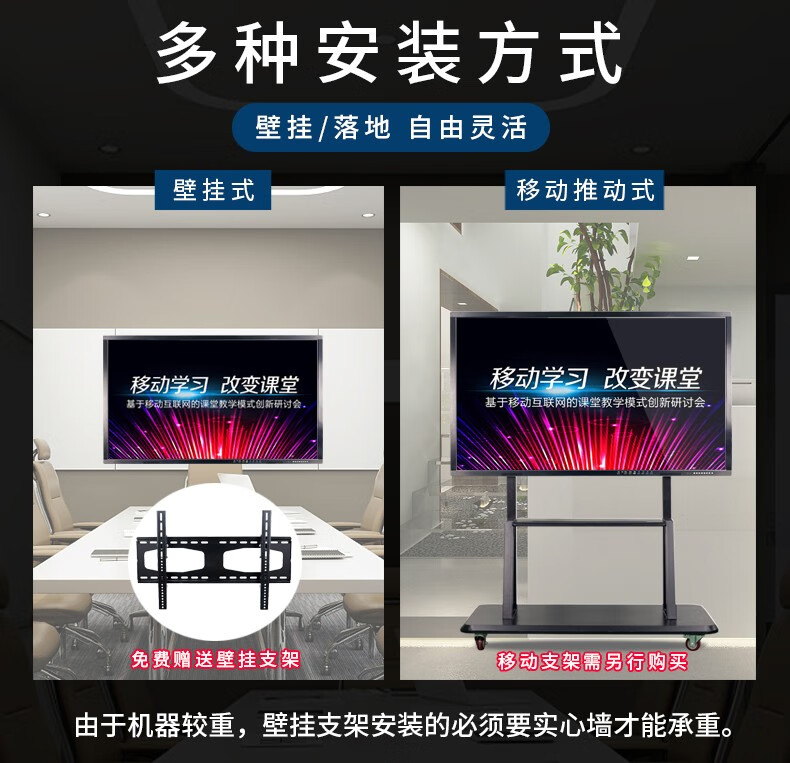 品祺品祺多媒体教学一体机电脑触摸一体机会议平板智慧屏投屏显示器触屏电子白板幼儿园交互式实时批注 55英寸(店长推荐) i5二代 8g+128g教学一体机(壁挂架)准尺寸