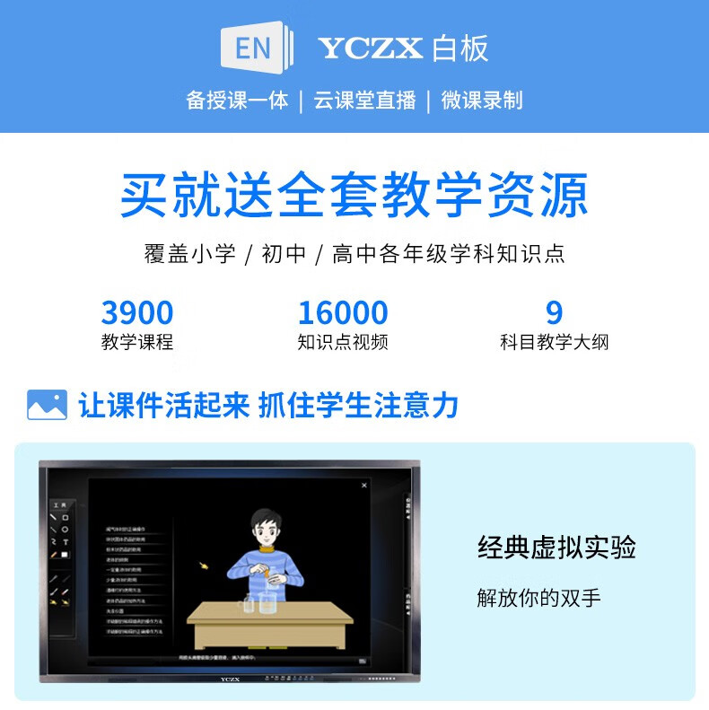 YCZX 教学一体机会议触摸屏电脑电子白板多媒体触摸交互式白板幼儿园培训公司触控手写商显屏 65寸/适用10-15人/赠送推车 【教学标配】win10(二代i5/8G/128G)