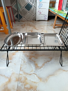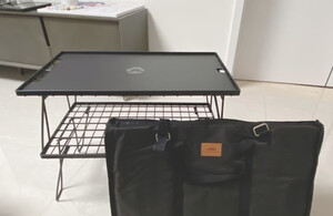 之前有两个,再买两个,自己配了一个铝板。现在的这个设计卡扣比以前那个设计的更合理。自己配了点儿夹子,摞起来的时候可以把它夹住。配的袋子很结实,一个袋子里边能放三张这个桌子。