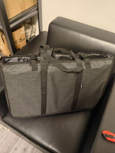 做工不错,容量巨大,可以放下两张igt桌加一张igt桥桌,长短提手,可提可背,前侧还有个单元板收纳口袋,满足收纳需求。