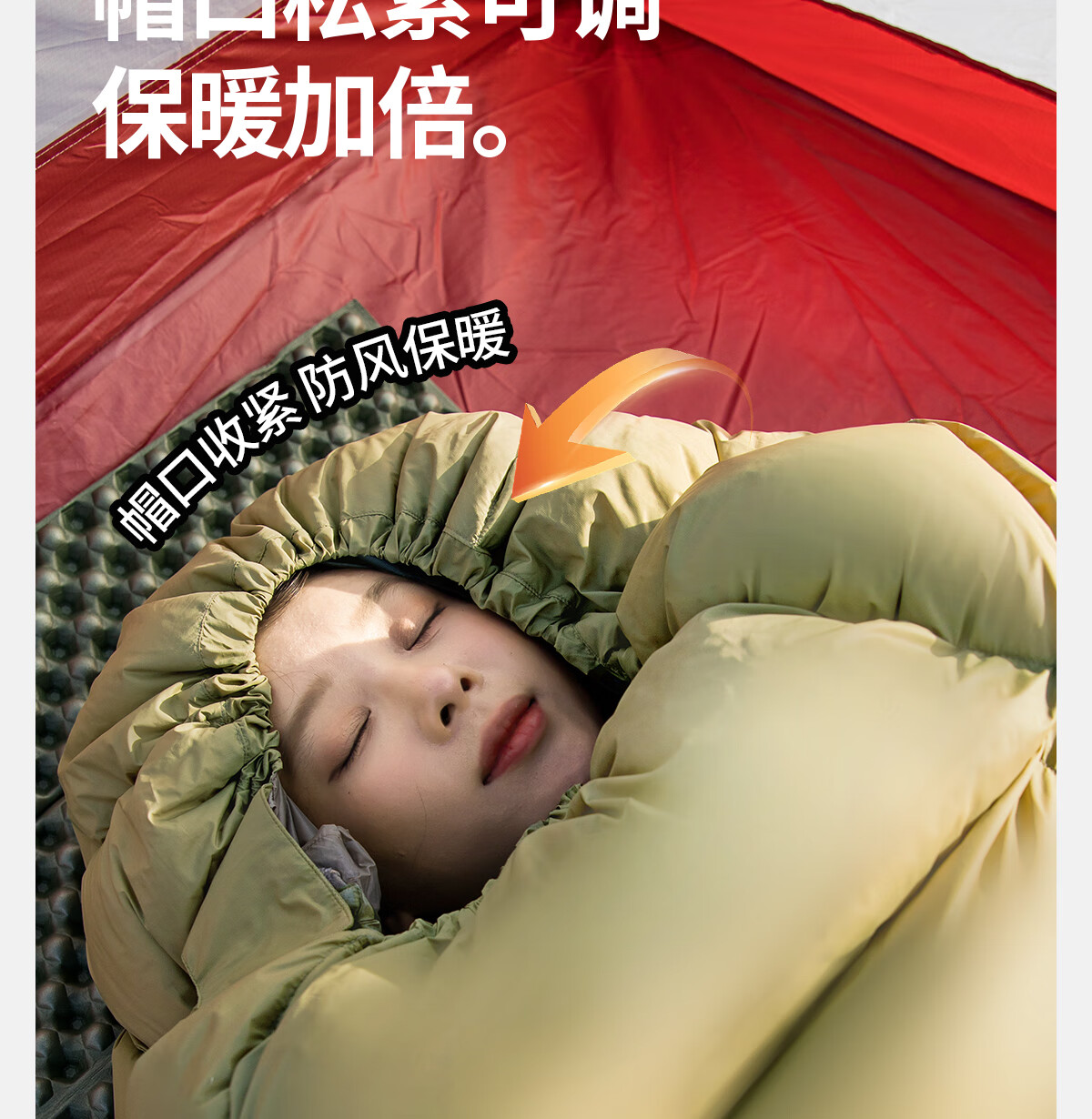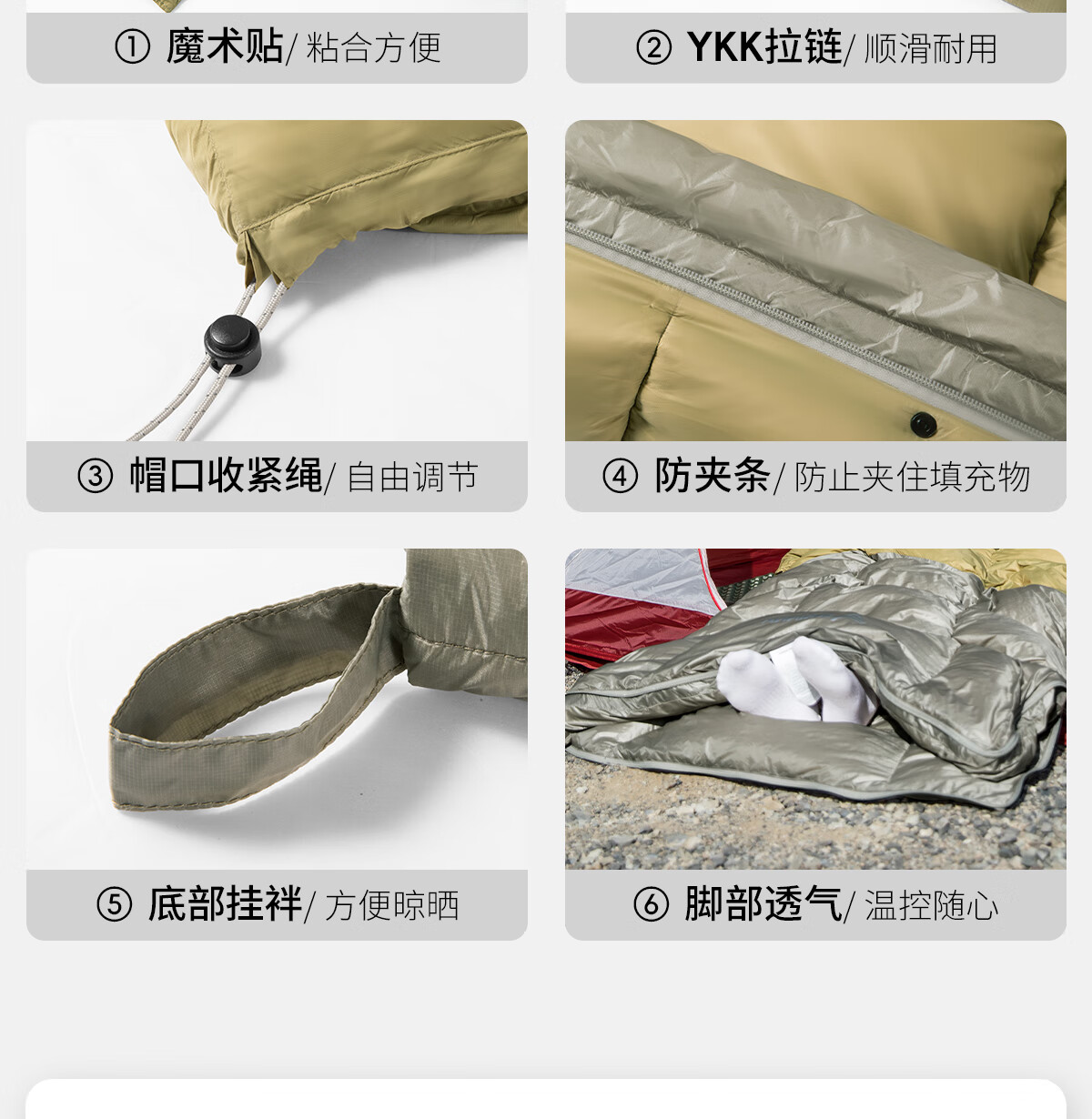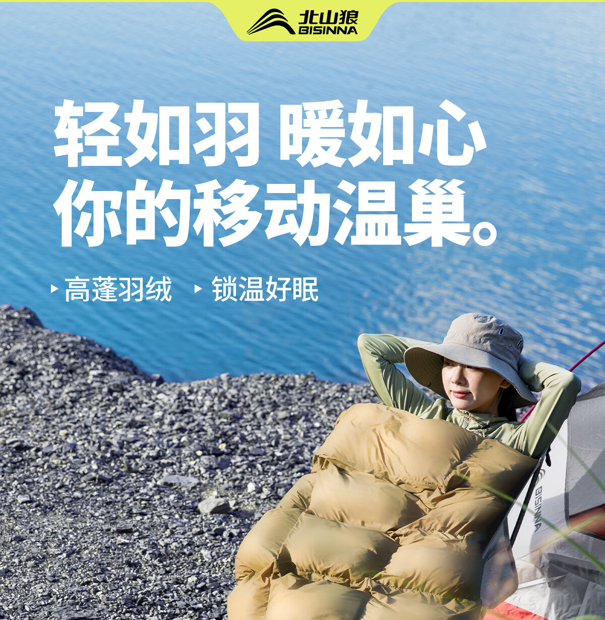 北山狼 轻量化羽绒睡袋成人户外露营防寒保暖睡袋被子二合一便携体积小 400g卡其棕【0℃~10℃】