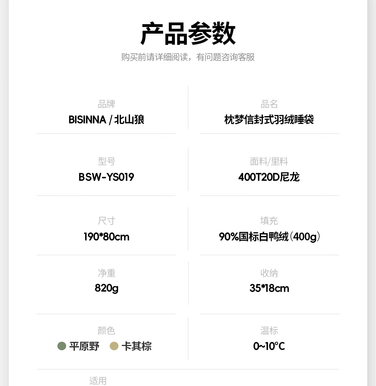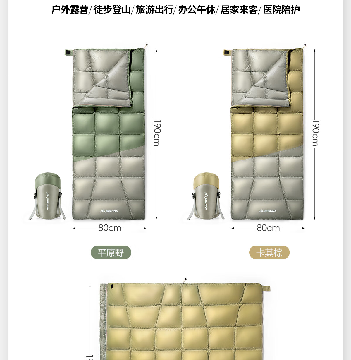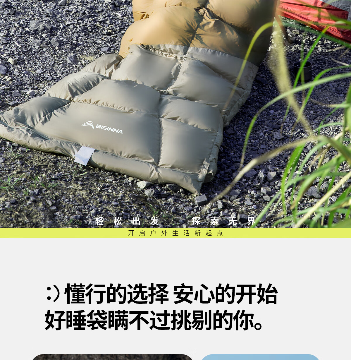 北山狼 轻量化羽绒睡袋成人户外露营防寒保暖睡袋被子二合一便携体积小 400g卡其棕【0℃~10℃】
