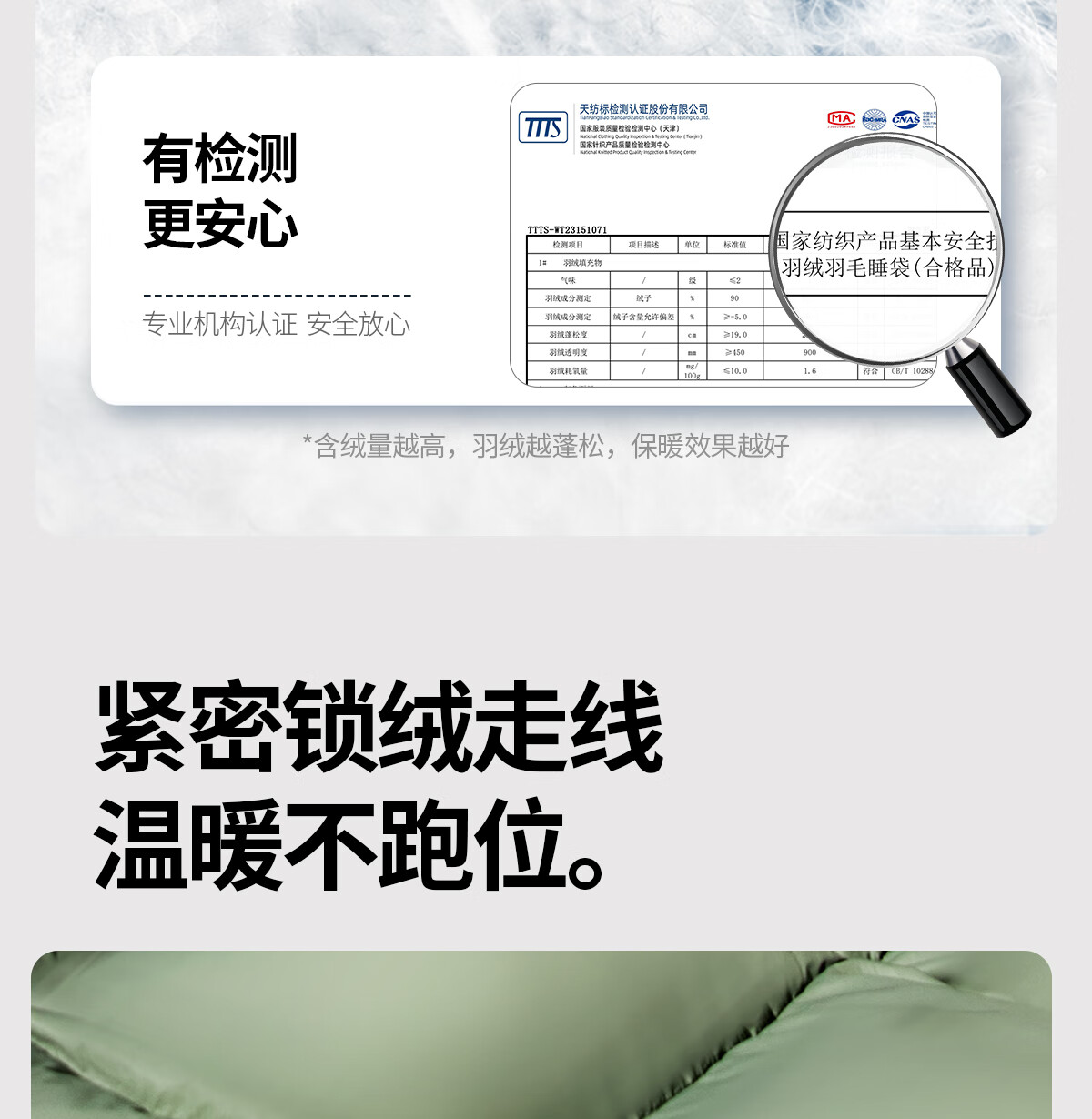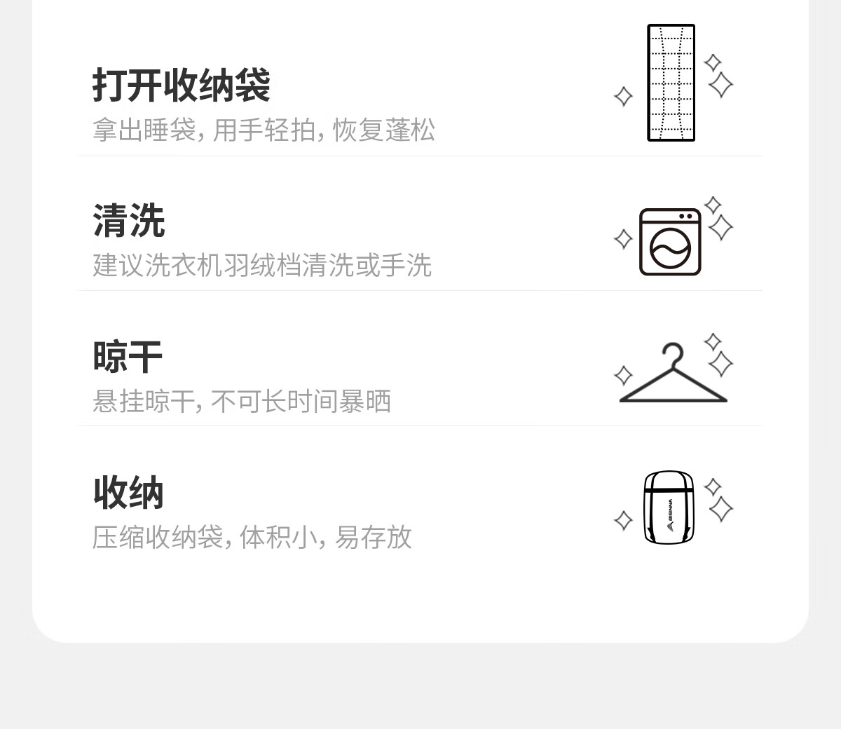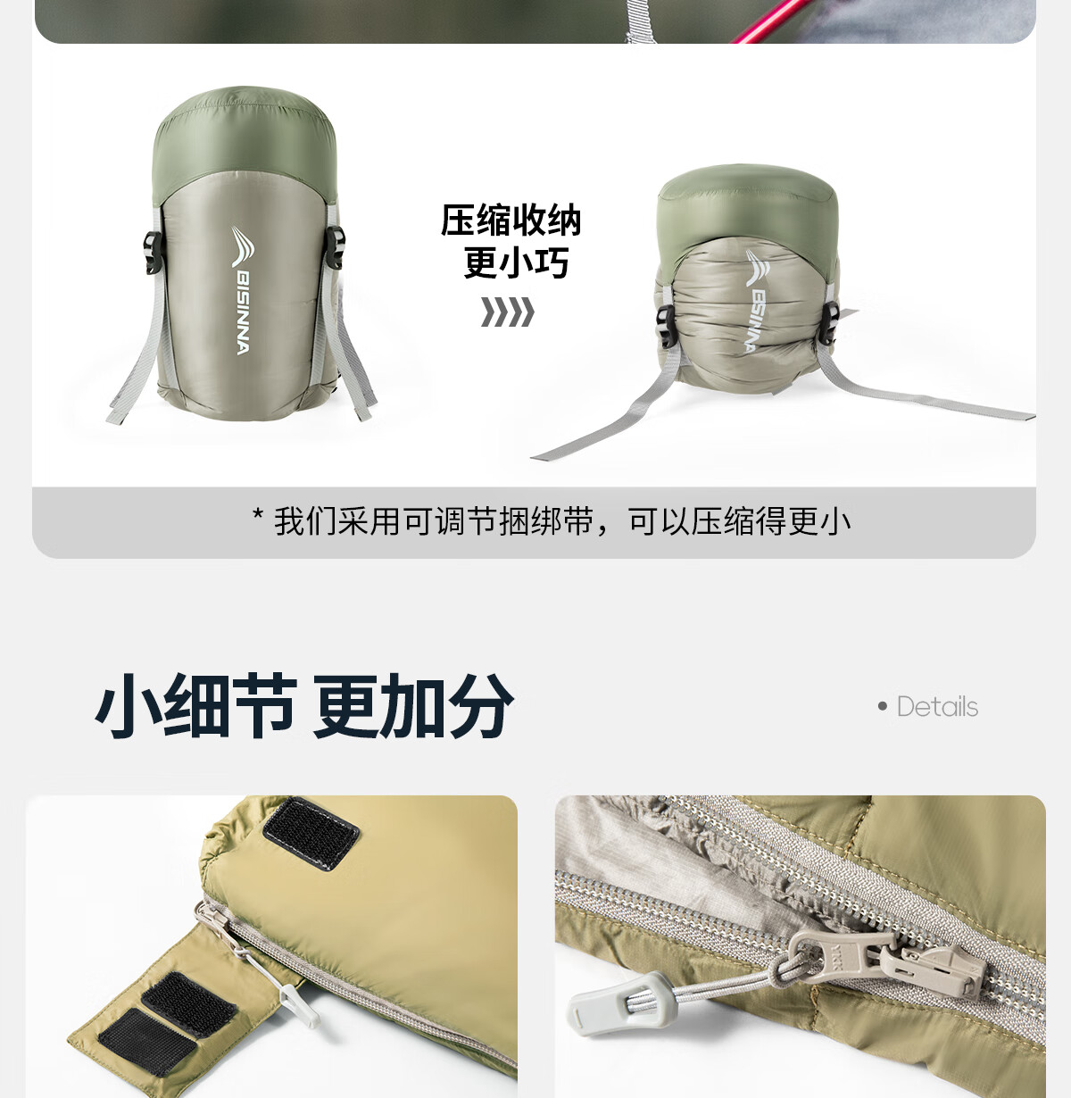 睡袋收到了 质量很好 面料很舒服 做工精细 保暖性很好 收纳起来的体积也很不错 很轻