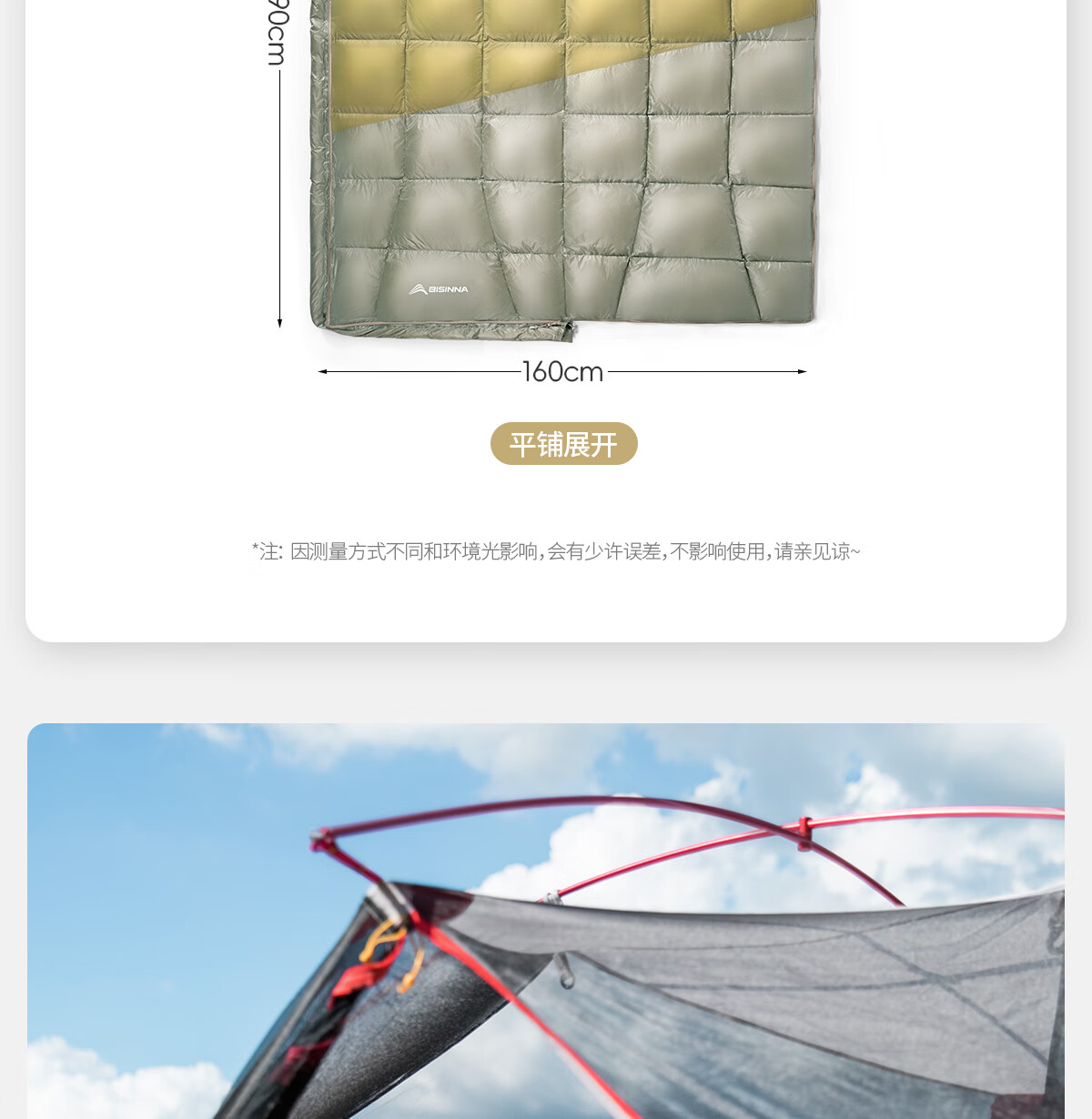 露营用的 很不错 颜色也是自己喜欢的 不会重 拿到手体积也不会大 晚上睡觉的时候不冷