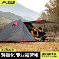 北山狼 轻量化帐篷户外露营防雨过夜3人-4人徒步登山帐篷双层防晒 陨石灰-2人铝杆