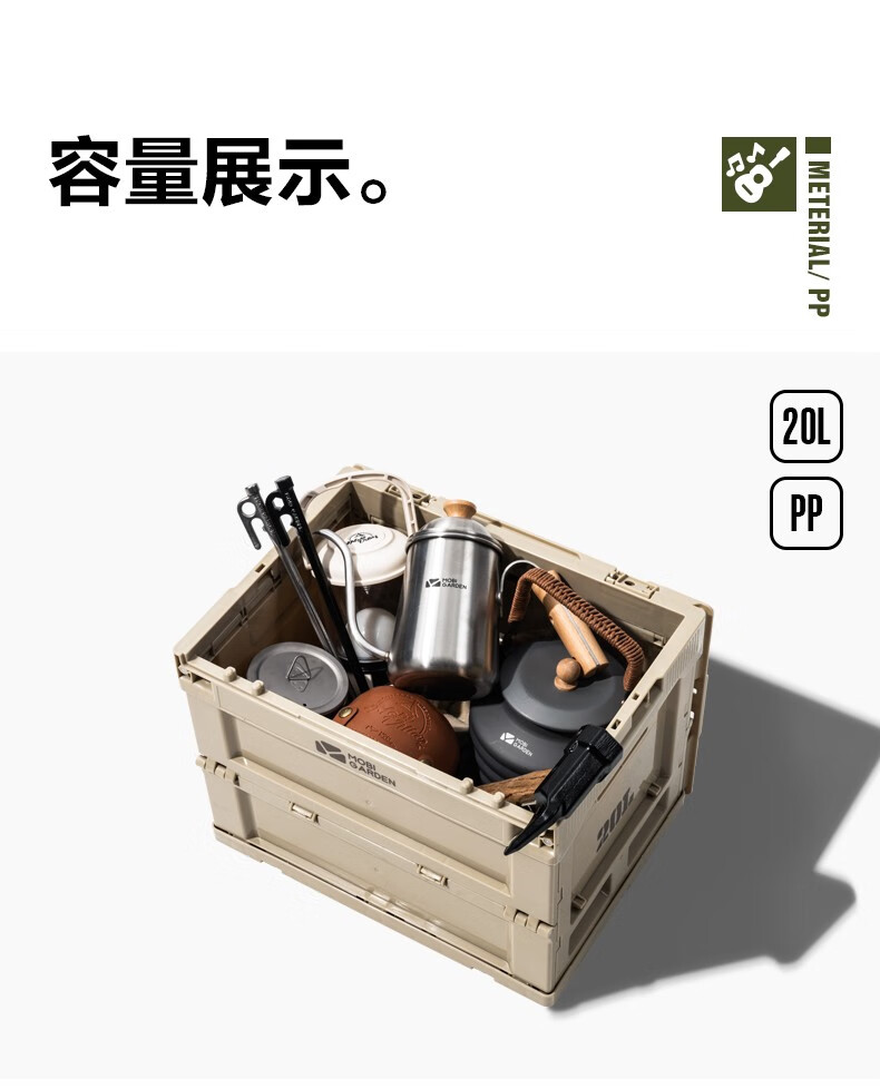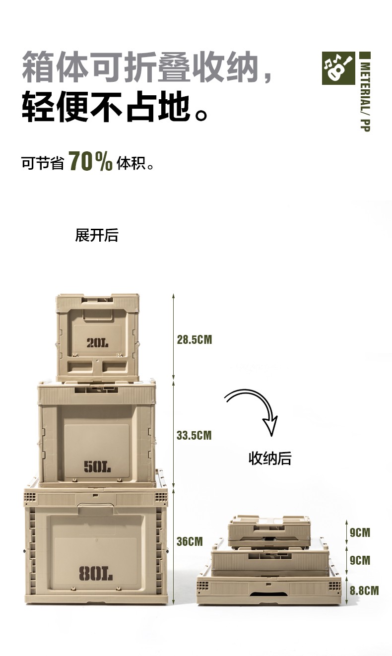 牧高笛 户外露营折叠收纳箱多功能大容量便携野炊餐具装备收纳箱 暖沙色80L