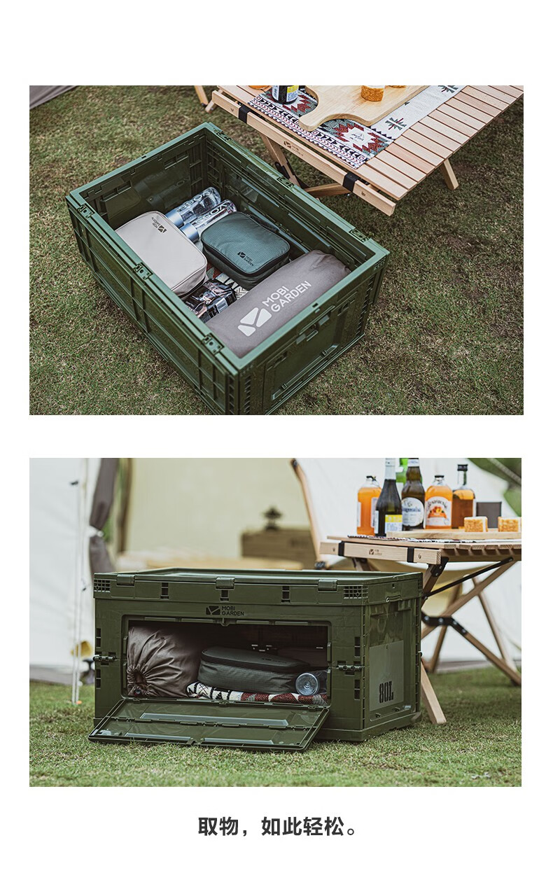 很好的折叠箱,收折起来放车后备箱不占地方,牧高笛的产品品质不错,下次露营不用搬很多个东西放阴凉处躲避太阳了,一个箱子就可以装很多煮饭用的调料,米,油等食物和小厨具。