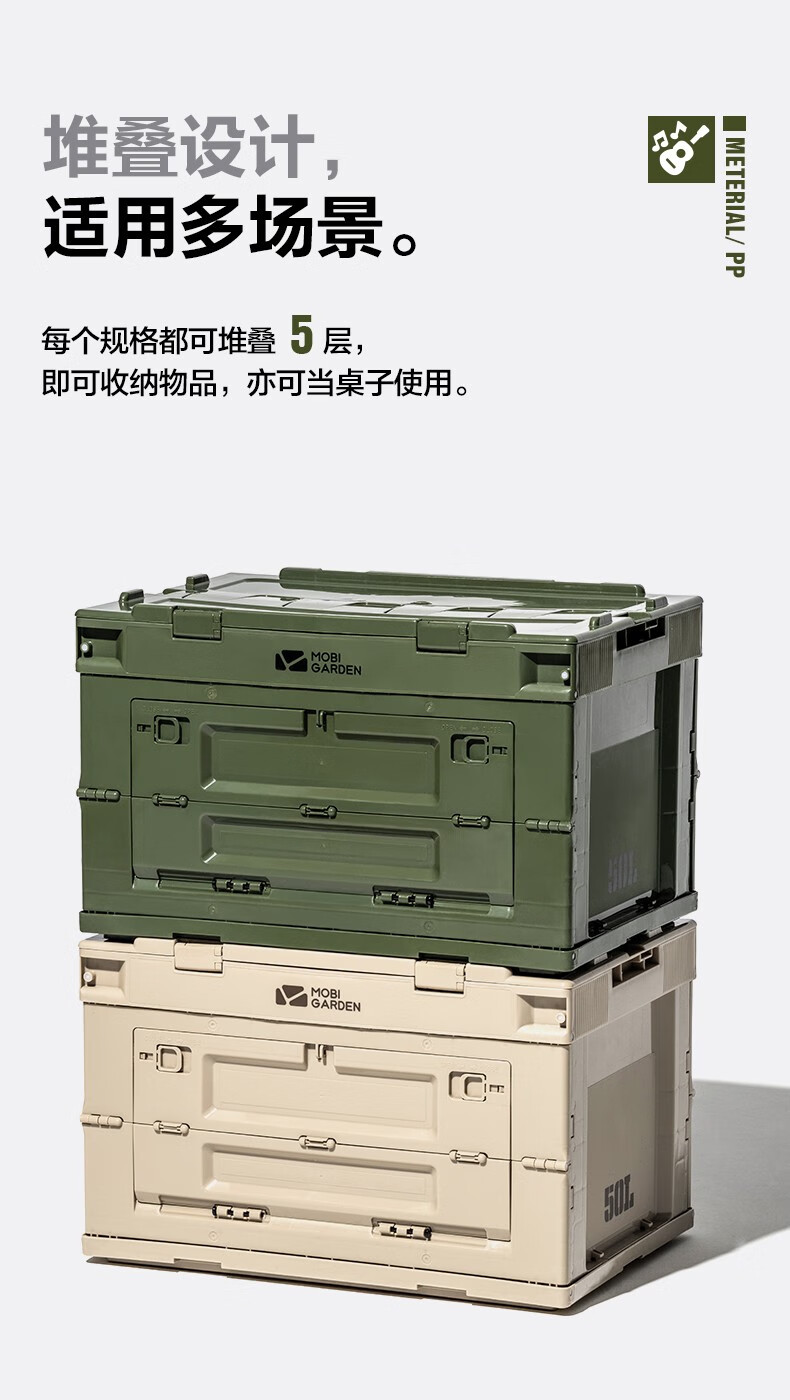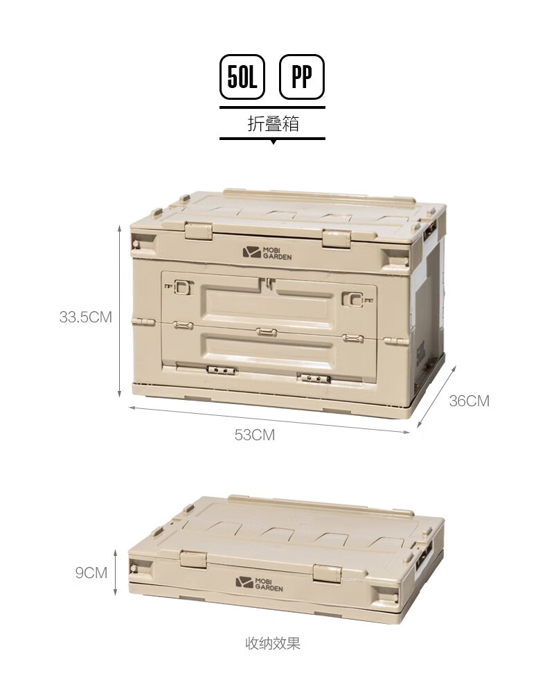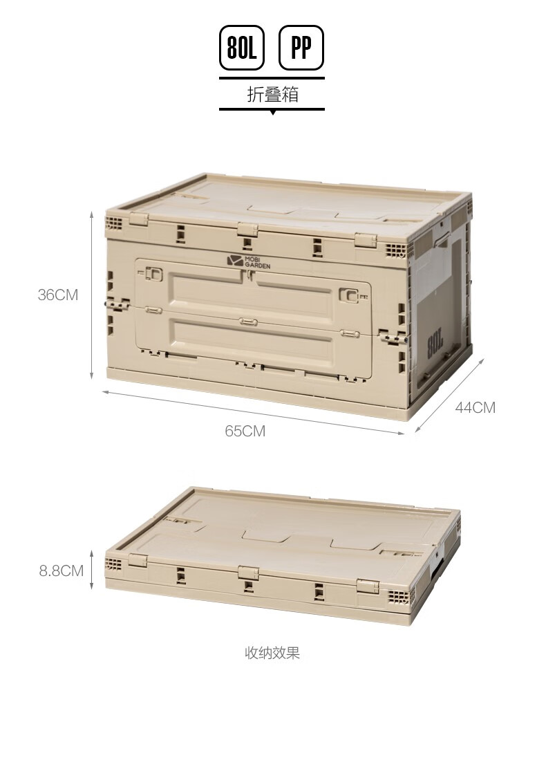 牧高笛(MOBIGARDEN)收纳箱 户外露营可折叠便携车载杂物大容量储物箱睿纳 暖沙色80L
